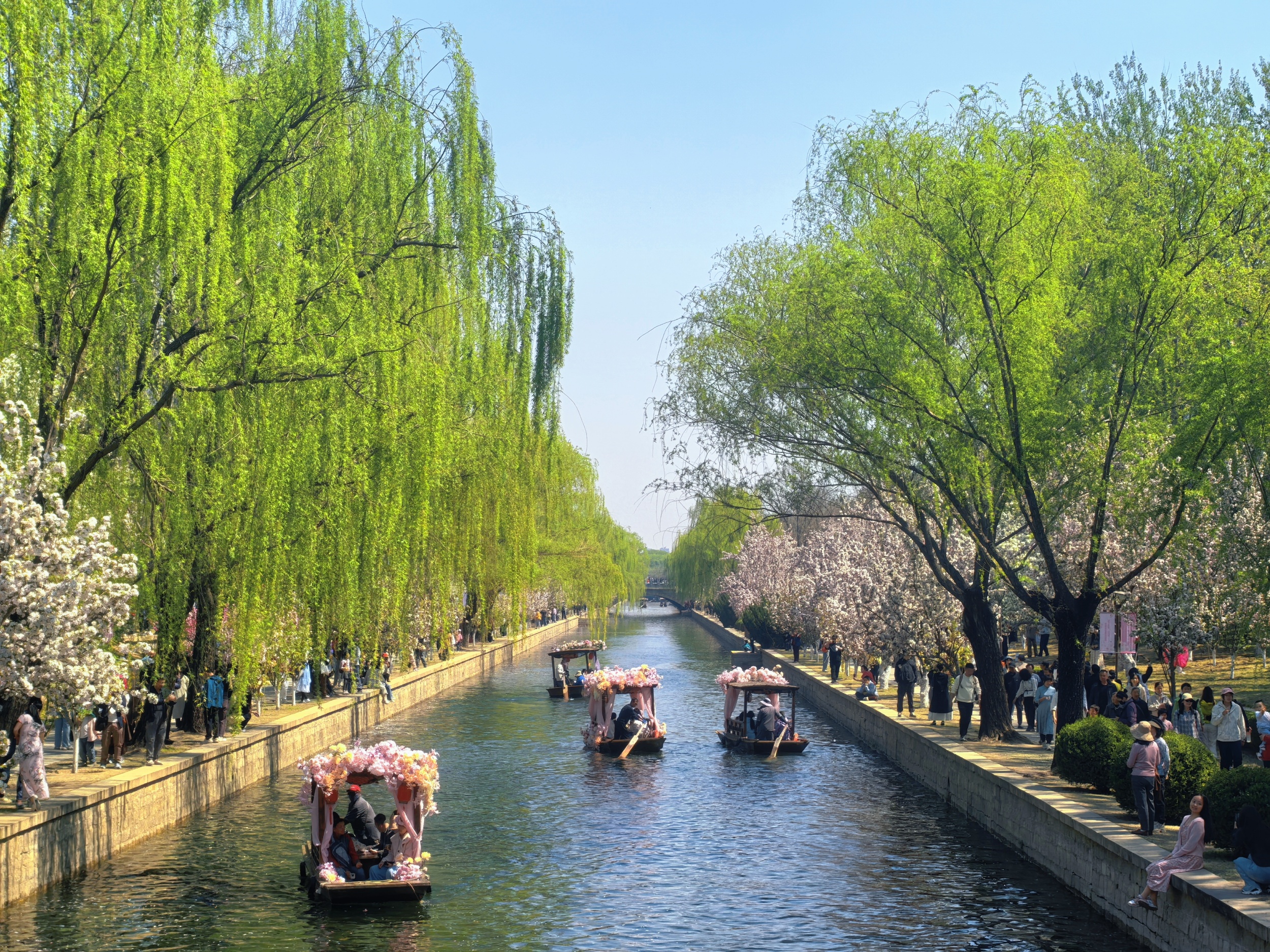This year, ancient-style sculling boats have been introduced, adding an extra touch of charm to the festival. The boats have quickly become a major draw for visitors. Adorned with dainty pink flowers at the bows, the boats blend harmoniously with the surrounding crabapple blossoms, as if nature and craftsmanship had collaborated to create a picture-perfect scene.