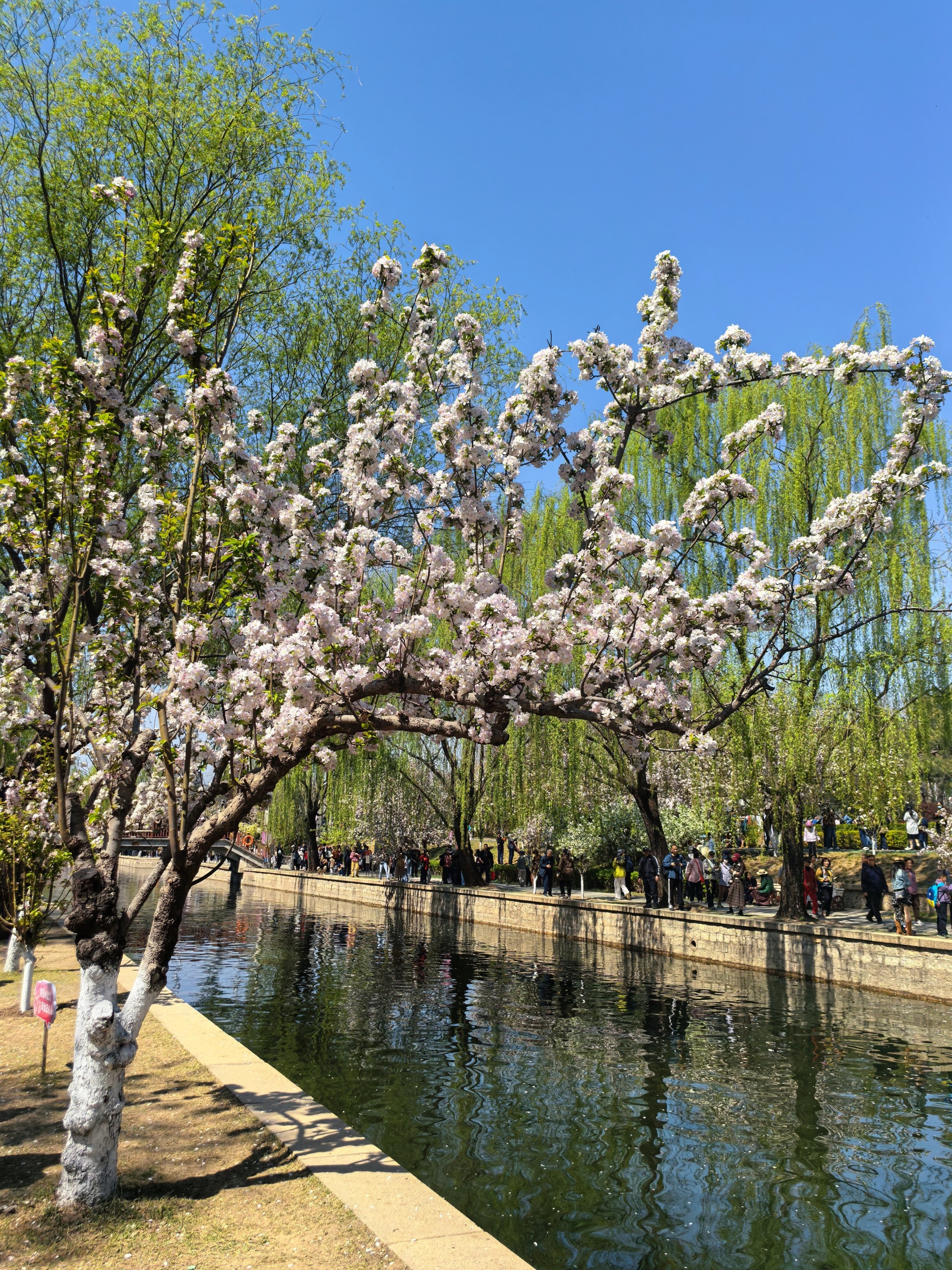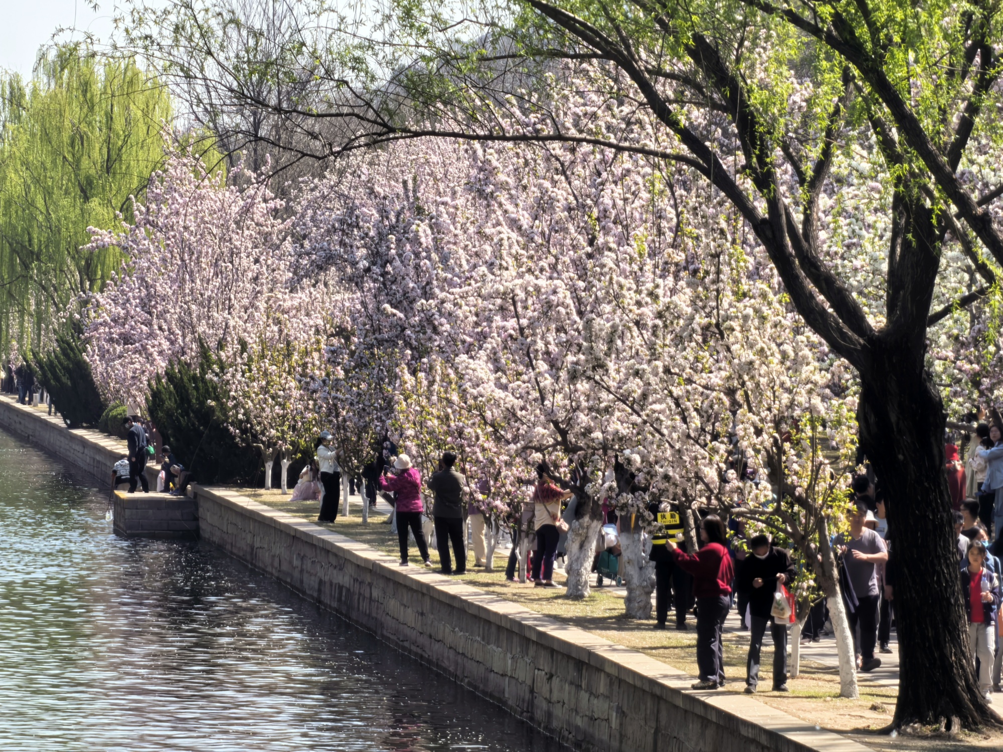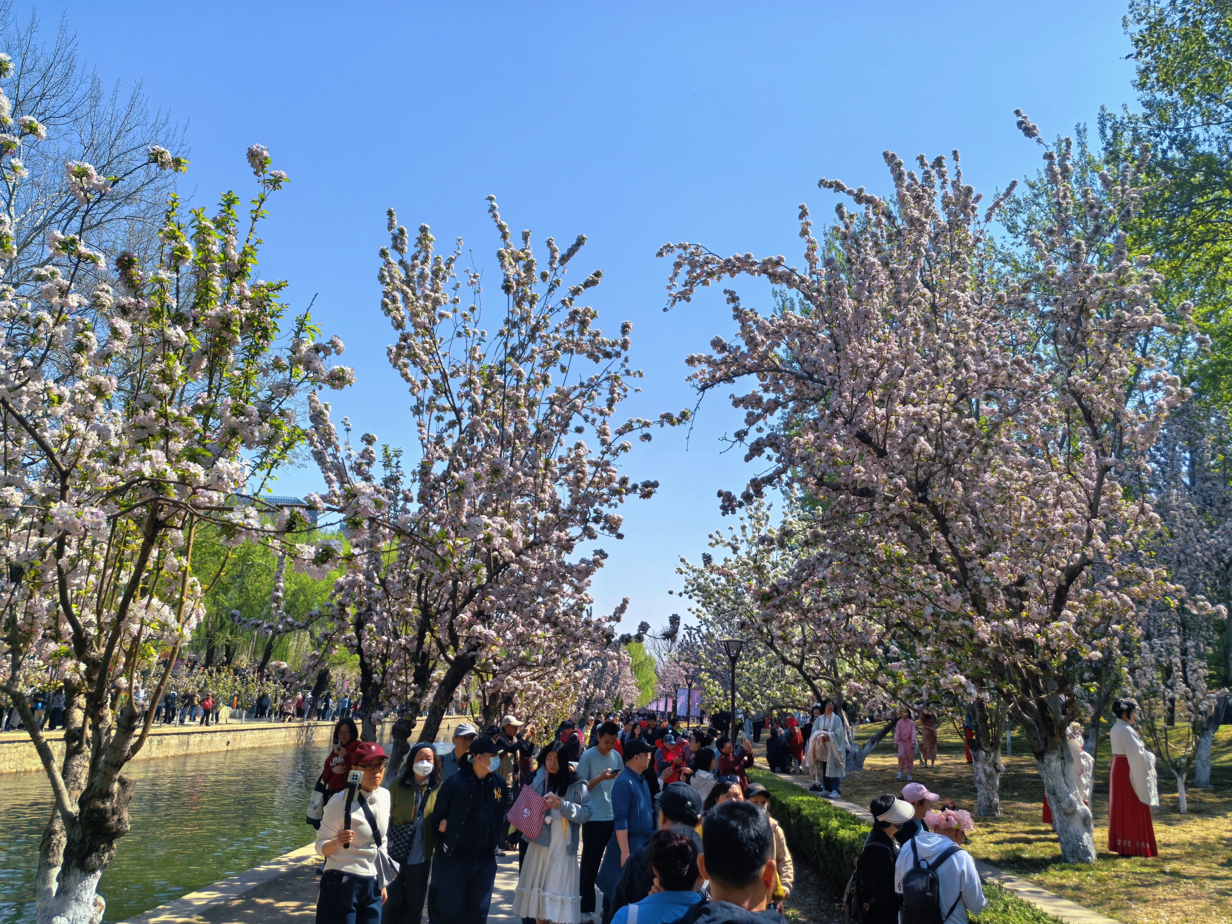 In Beijing, the highly anticipated crabapple flower festival is underway at the Yuan Dynasty Dadu City Wall Relics Park, which has long been renowned as one of the city's top flower spots. As spring unfolds, over 5,000 crabapple trees within the park have burst into a magnificent display of full bloom. The delicate pink and pure white blossoms lavishly adorn the riverbanks, creating a spellbinding visual feast.