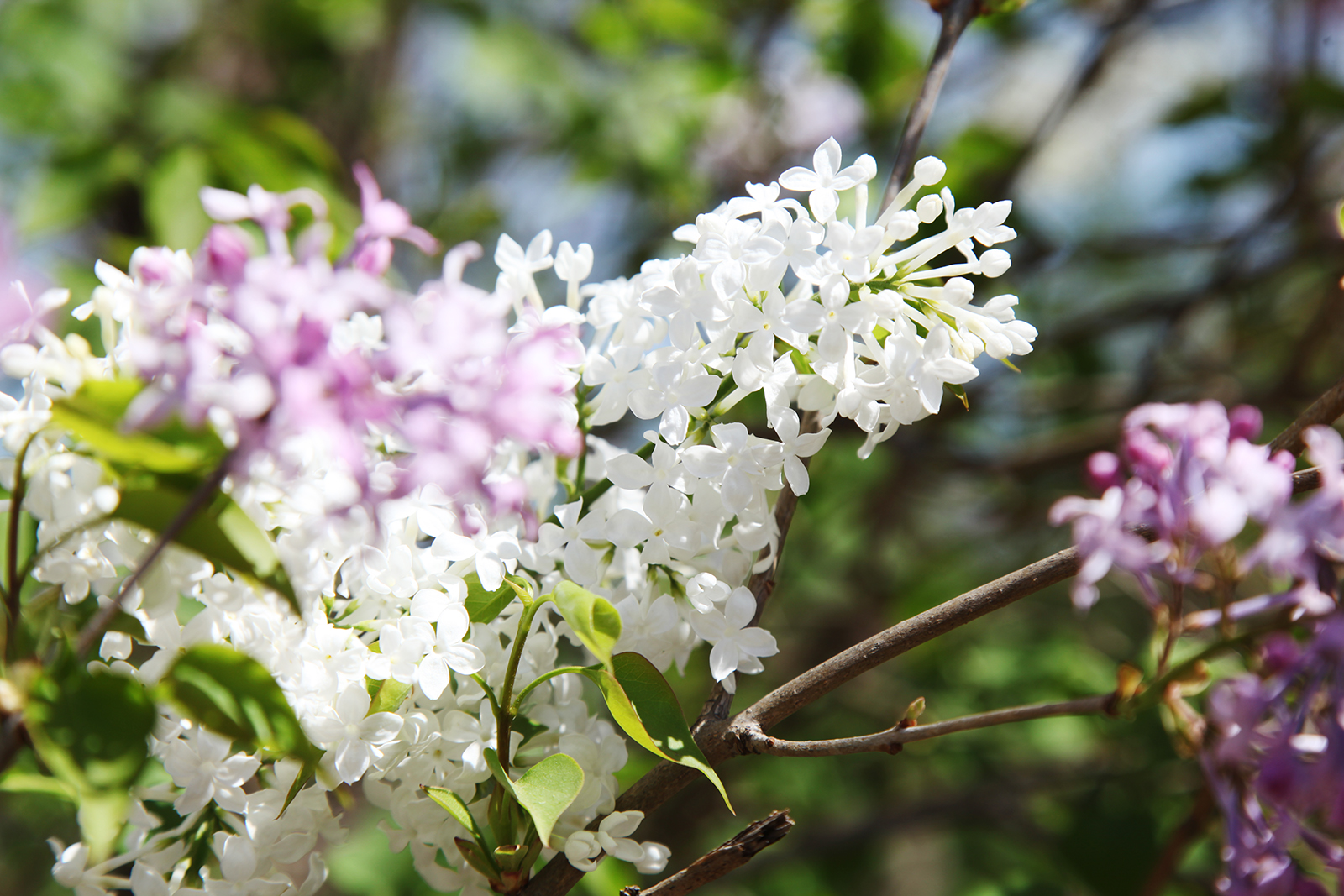 Purple and white lilac flowers bloom at the Olympic Forest Park in Beijing on April 5, 2025. /CGTN