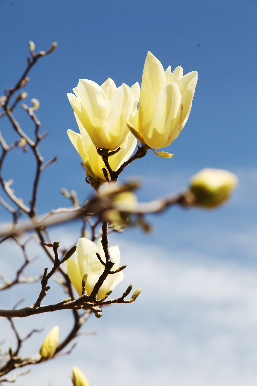 Magnolia flowers stand tall atop the branches at the Olympic Forest Park in Beijing on April 5, 2025. /CGTN