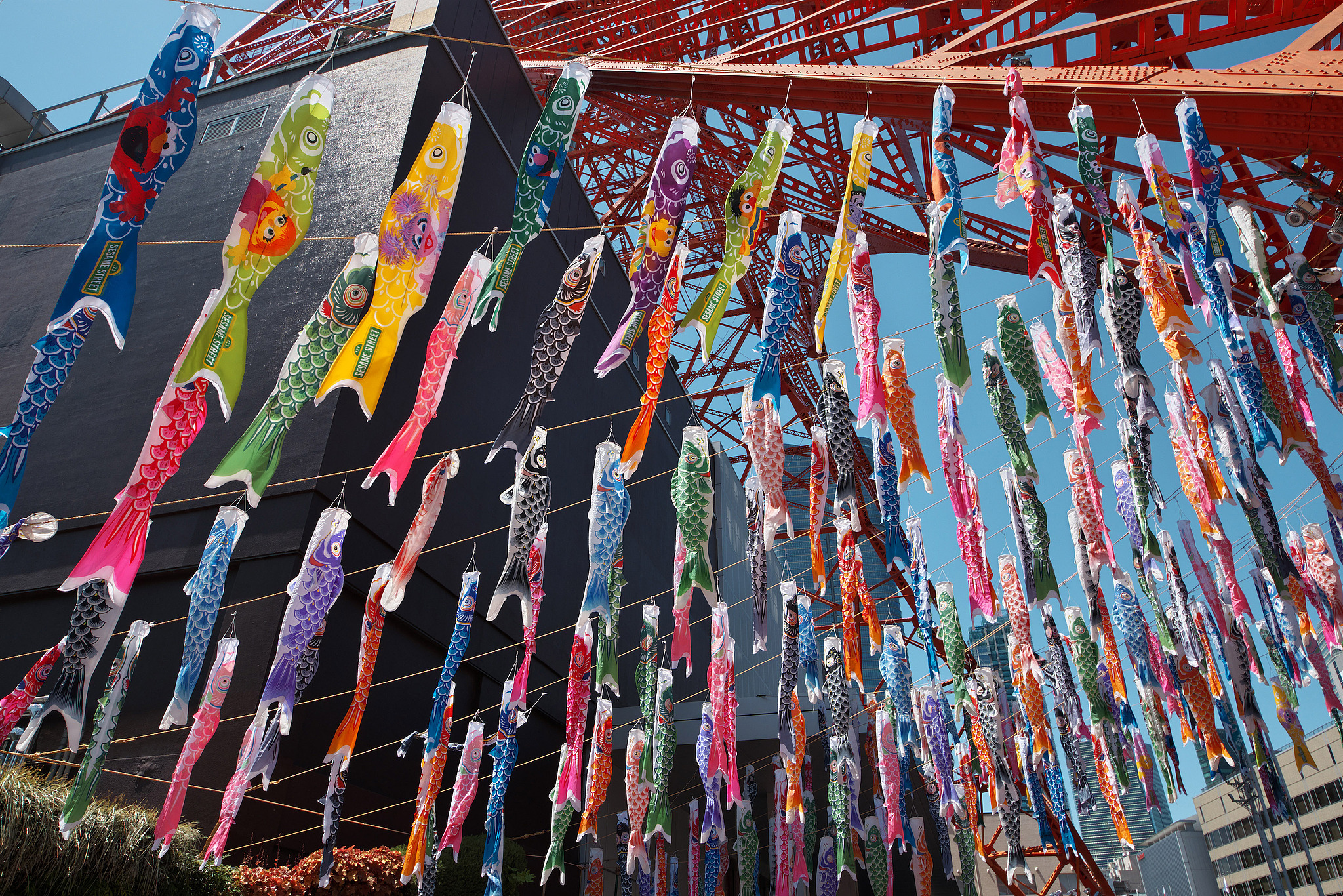 A file photo shows carp-shaped streamers displayed under the Tokyo Tower in Tokyo, Japan during Japan's Children's Day. /VCG