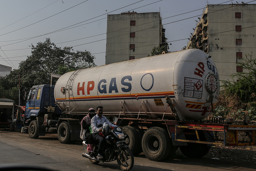 A Hindustan Petroleum Corporation oil tanker outside an oil refinery operated by the Hindustan Petroleum Corporation, in Mumbai, India. April 4, 2025. /CFP