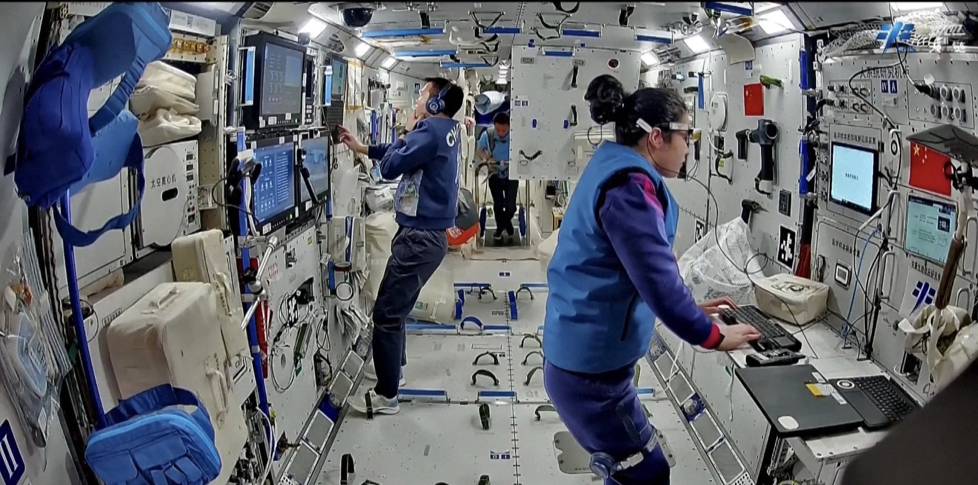 China's Shenzhou-19 crew works at the China Space Station. /CGTN