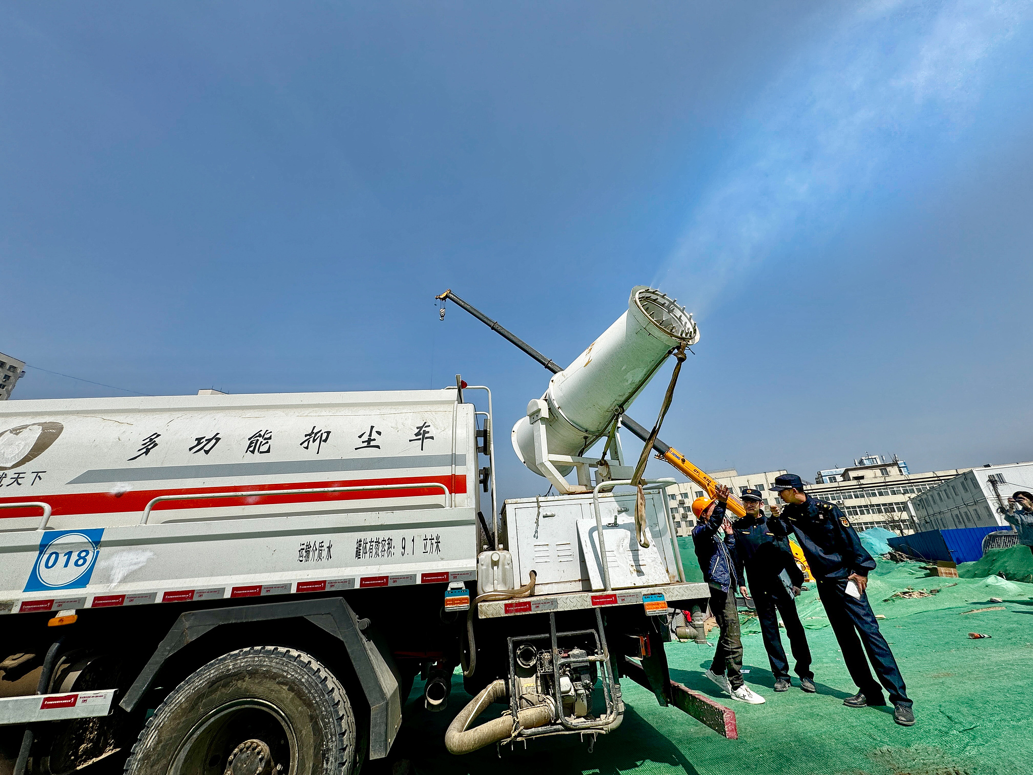 Local governments take multiple measures to cope with strong winds in Beijing, China, April 10, 2025. /VCG
