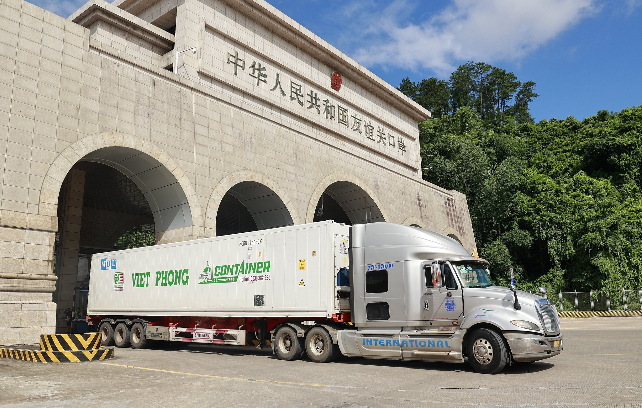 A refrigerated truck from Vietnam passes through customs at Youyiguan Port in the Guangxi Zhuang Autonomous Region, south China, August 26, 2024. /VCG