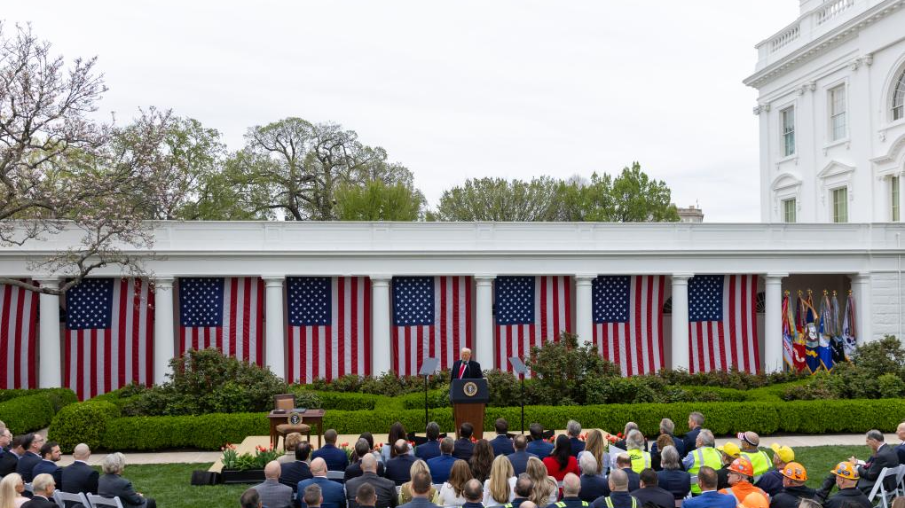 U.S. President Donald Trump delivers remarks on "reciprocal tariffs" at the Rose Garden of the White House in Washington, D.C., the United States, April 2, 2025. /Xinhua