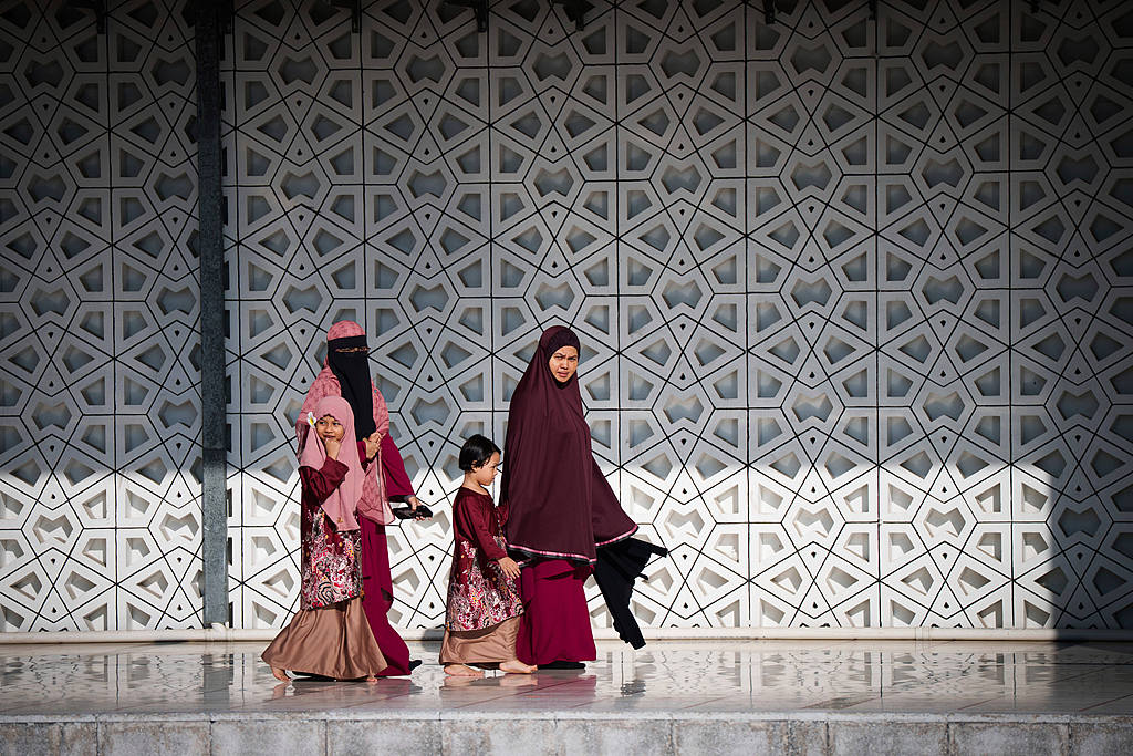 Muslim women walk with children during Eid al-Fitr– one of the foremost festivals of Islam – at National Mosque in Kuala Lumpur, Malaysia on March 31, 2025. /VCG