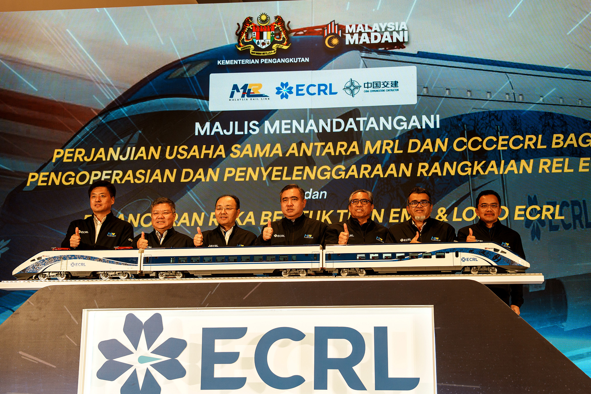 Passenger train design and logo of the Malaysia East Coast Rail Link are released in Putrajaya, Malaysia, December 18, 2024. A joint operation and maintenance agreement was also signed by Chinese and Malaysian companies. /VCG