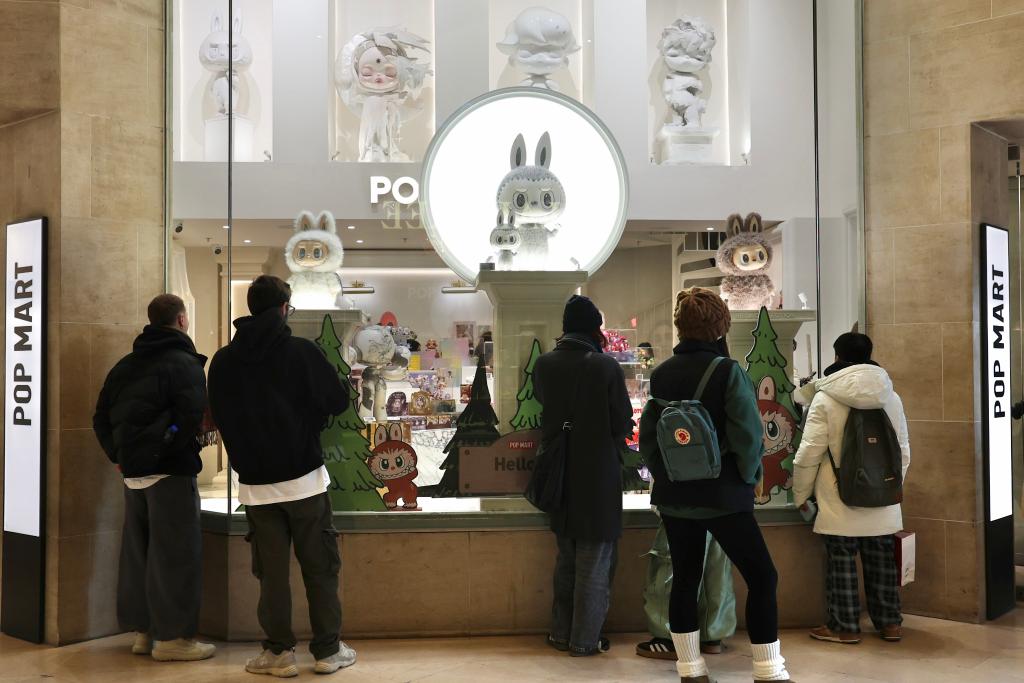 People linger around a POP MART store, a Chinese pop culture brand, near the Louvre Museum in Paris, France, March 18, 2025. /CFP