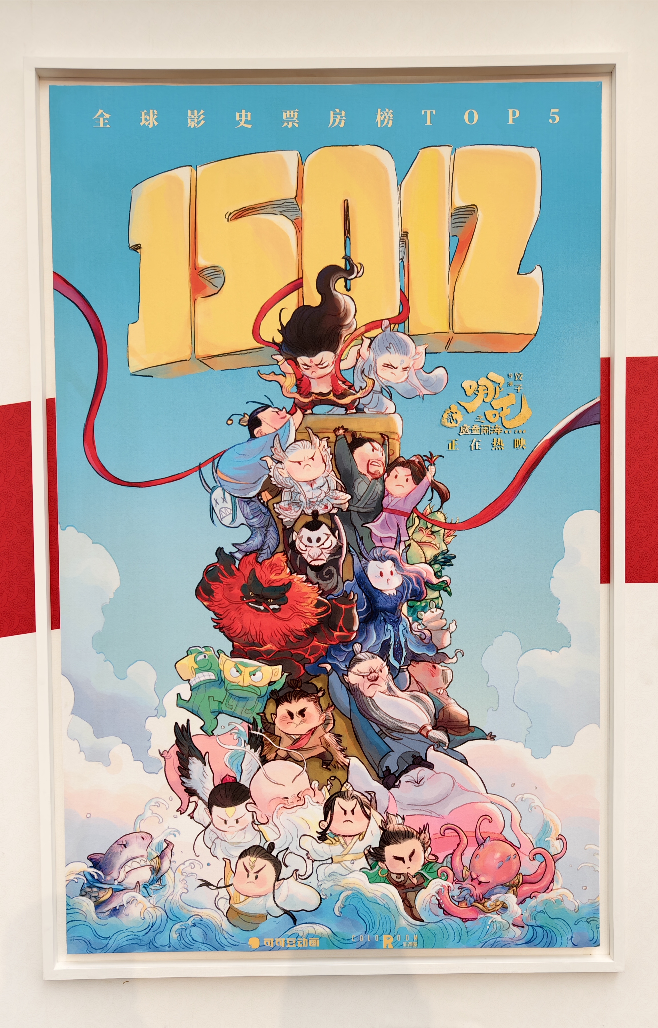 This poster drawn by Ne Zha 2 director Jiaozi is seen at the Beijing International Film Festival, April 18, 2025. /CGTN