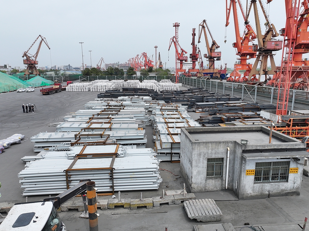 Routine inspections during cargo loading and unloading operations at Longwu Port Area in Shanghai, China, April 15, 2025. /VCG