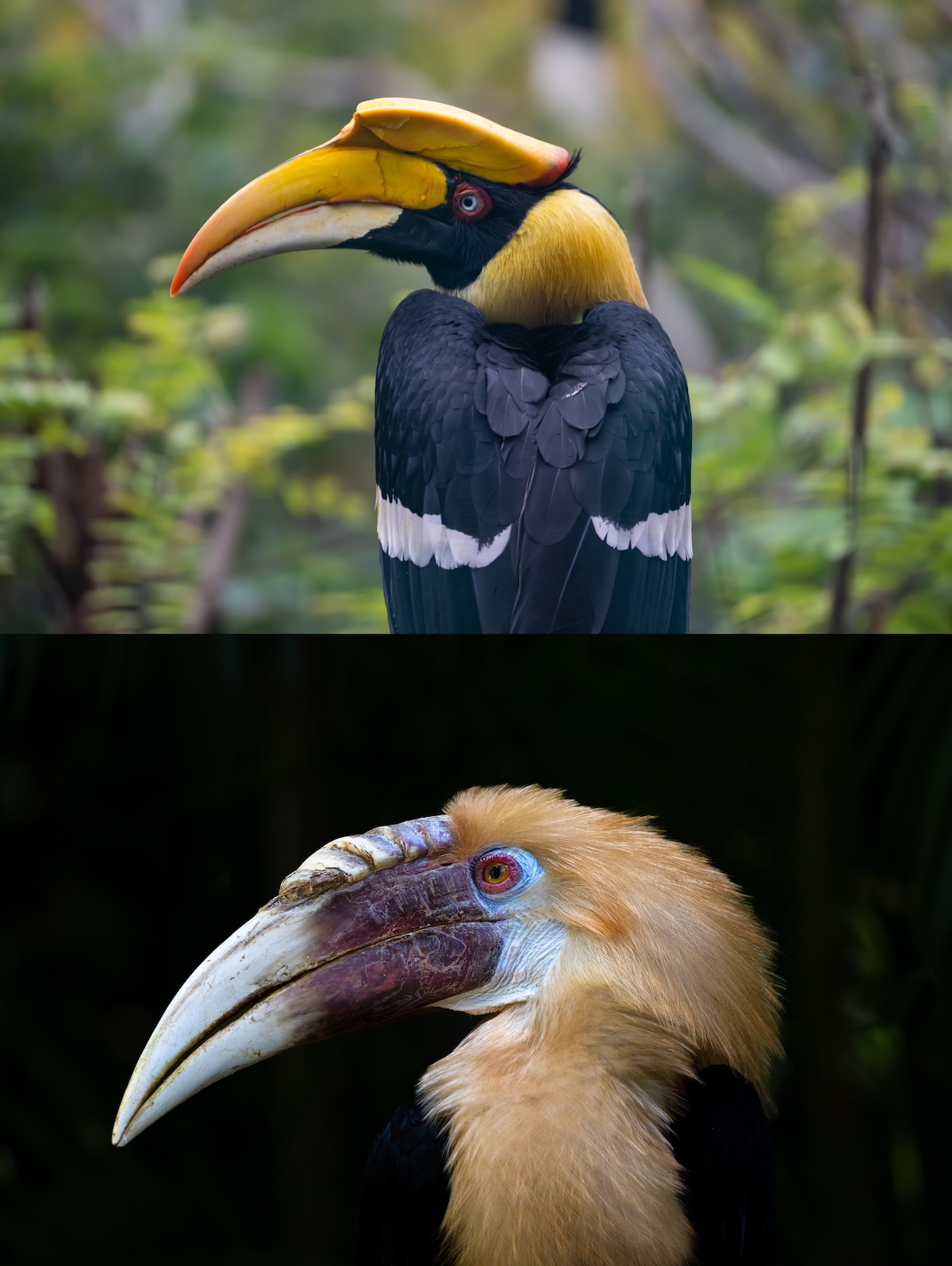A great hornbill (top) and a wreathed hornbill. /VCG