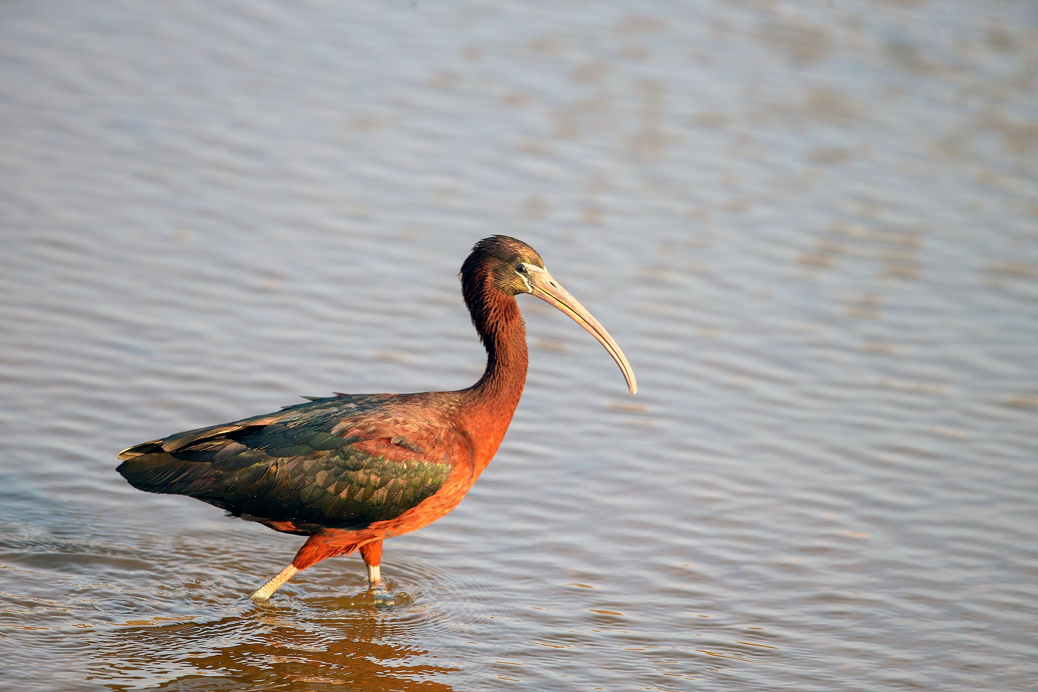 A glossy ibis is seen foraging at a coastal wetland in Qingdao, Shandong Province on April 19, 2025. /VCG