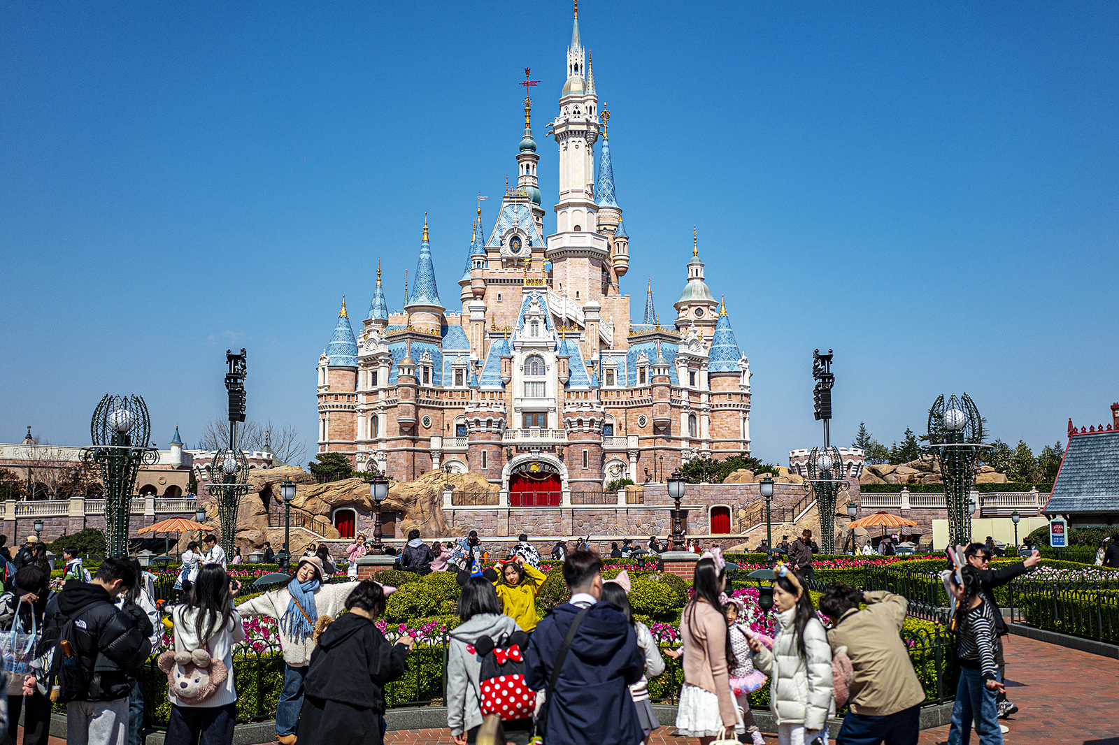 Visitors pose for photos at Shanghai Disneyland. /VCG