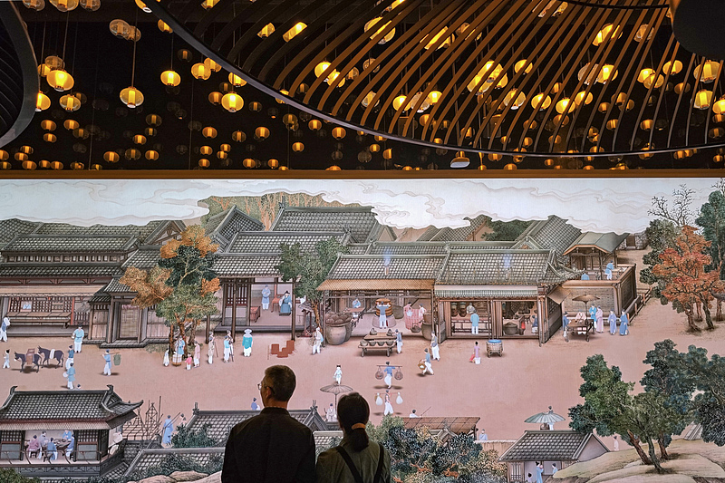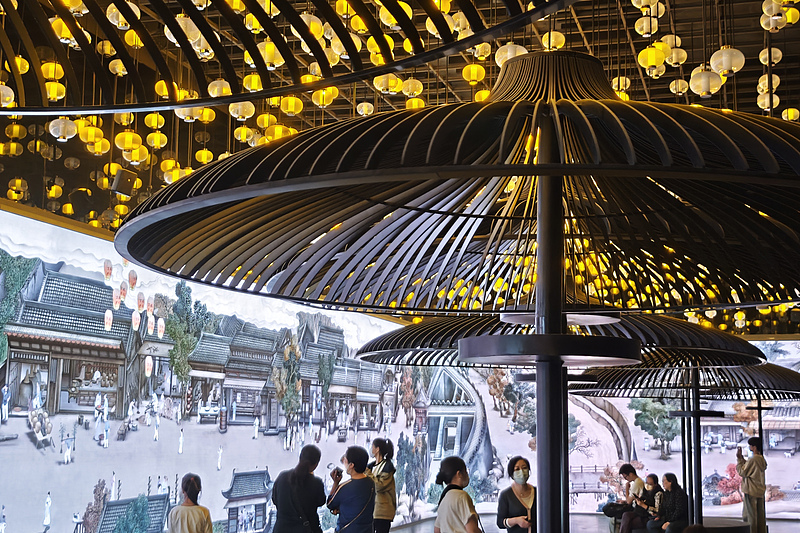 "A Digital Art Exhibition: An Interactive Landscape of Nanjing" is being held at the DEJI Art Museum in Nanjing, Jiangsu Province. Created by artist Feng Ning during the Qing Dynasty, the renowned painting "An Era in Jinling" is magnified and projected onto a 110m by 3.6m screen with built-in intelligent technology. This cutting-edge art installation allows visitors explore the dynamic cityscape of Jinling through advanced technology, providing an immersive experience for visitors to travel back to the golden age of the ancient city of Jinling.