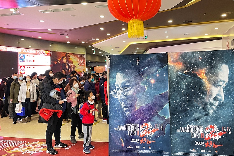 Moviegoers visit a cinema to watch "The Wandering Earth II" in Beijing. /VCG