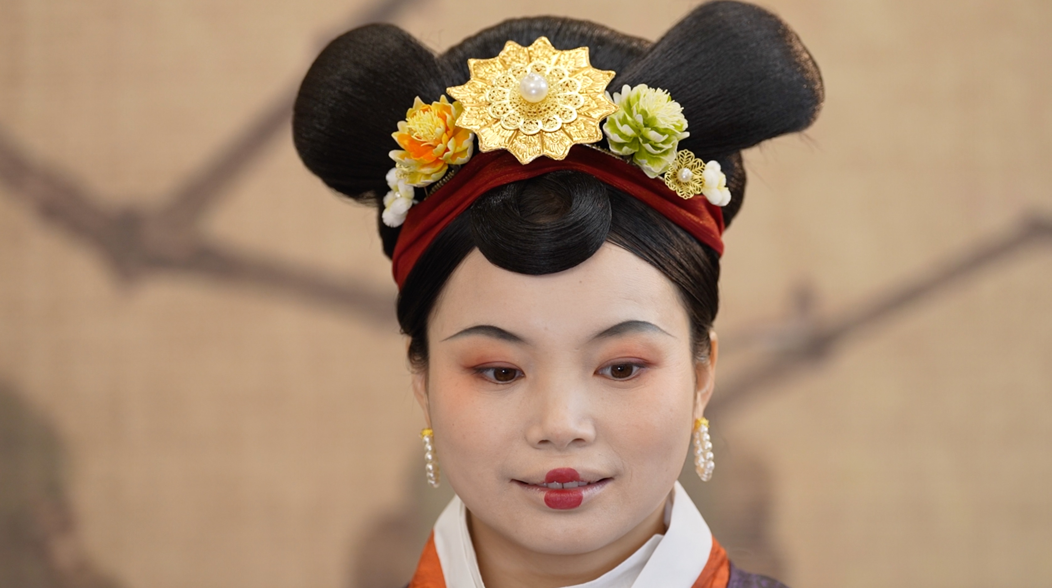Chengdu makeup artist Lan Xi recreates historical Chinese looks, inspired by ancient relics at the Chengdu Museum. /CGTN