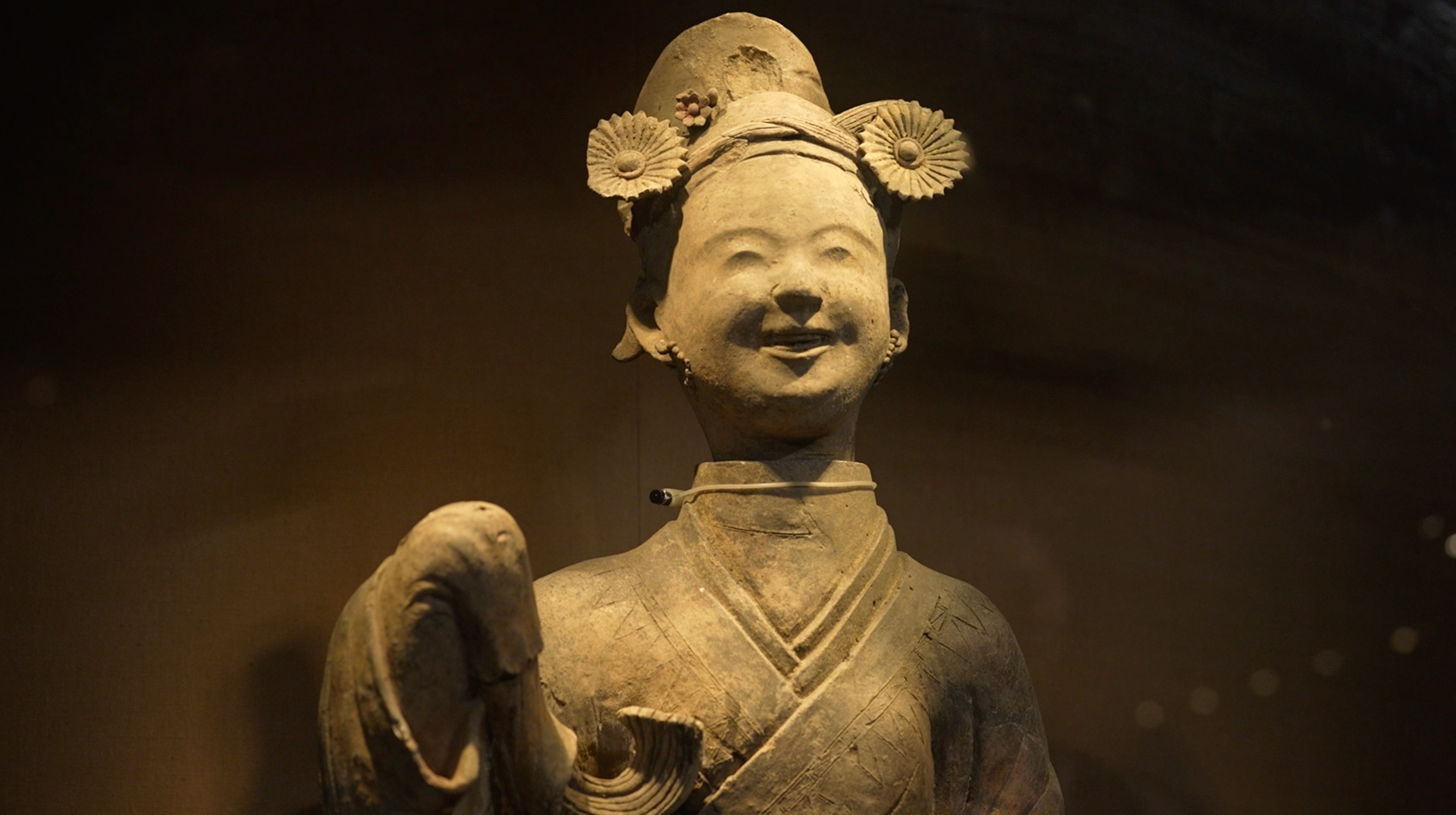 A pottery figurine on display at the Chengdu Museum. /CGTN