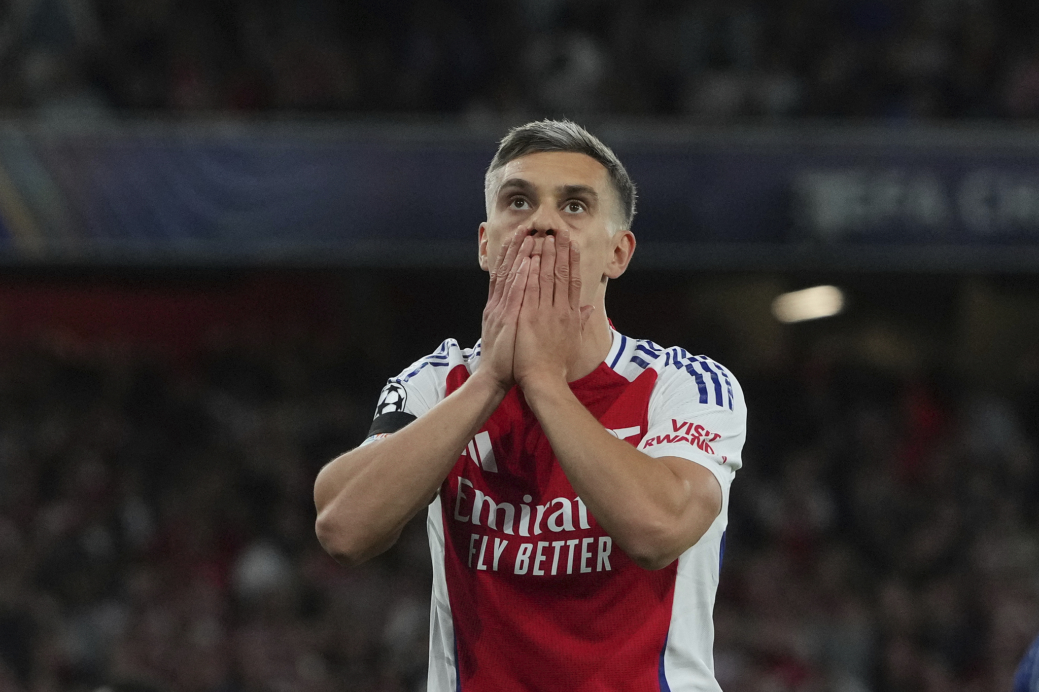 Arsenal's Leandro Trossard reacts after a missed scoring opportunity against PSG in their UEFA Champions League semifinal first leg match at the Emirates Stadium in London, England, April 29, 2025. /VCG