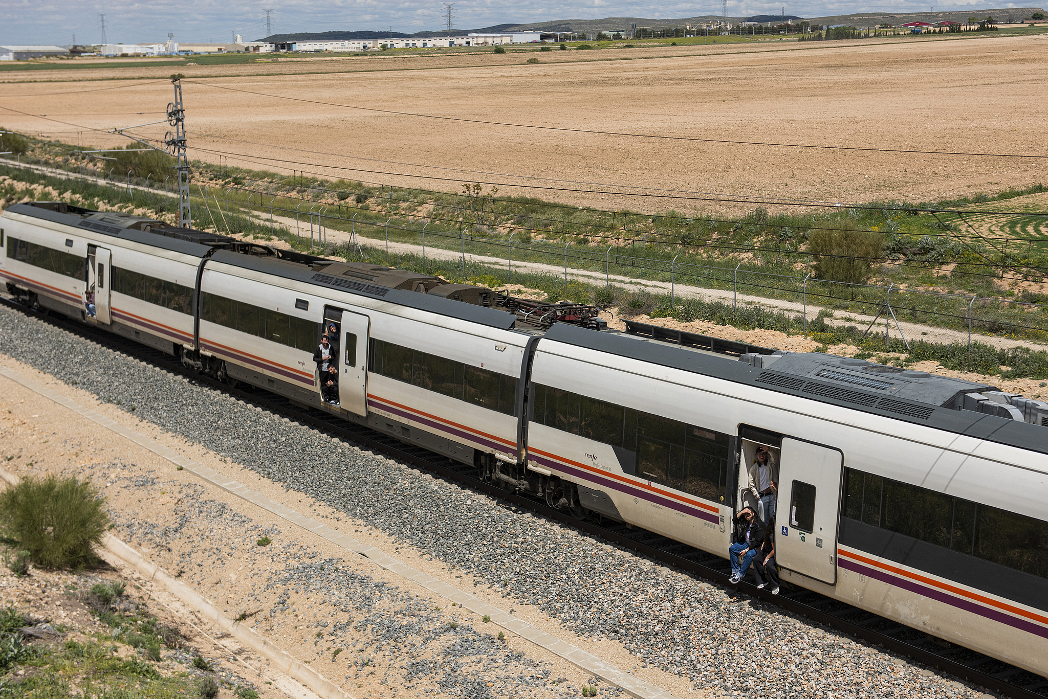 A train parks in the middle of the track due to the blackout in the city of Albacete, Spain, April 28, 2025. /VCG