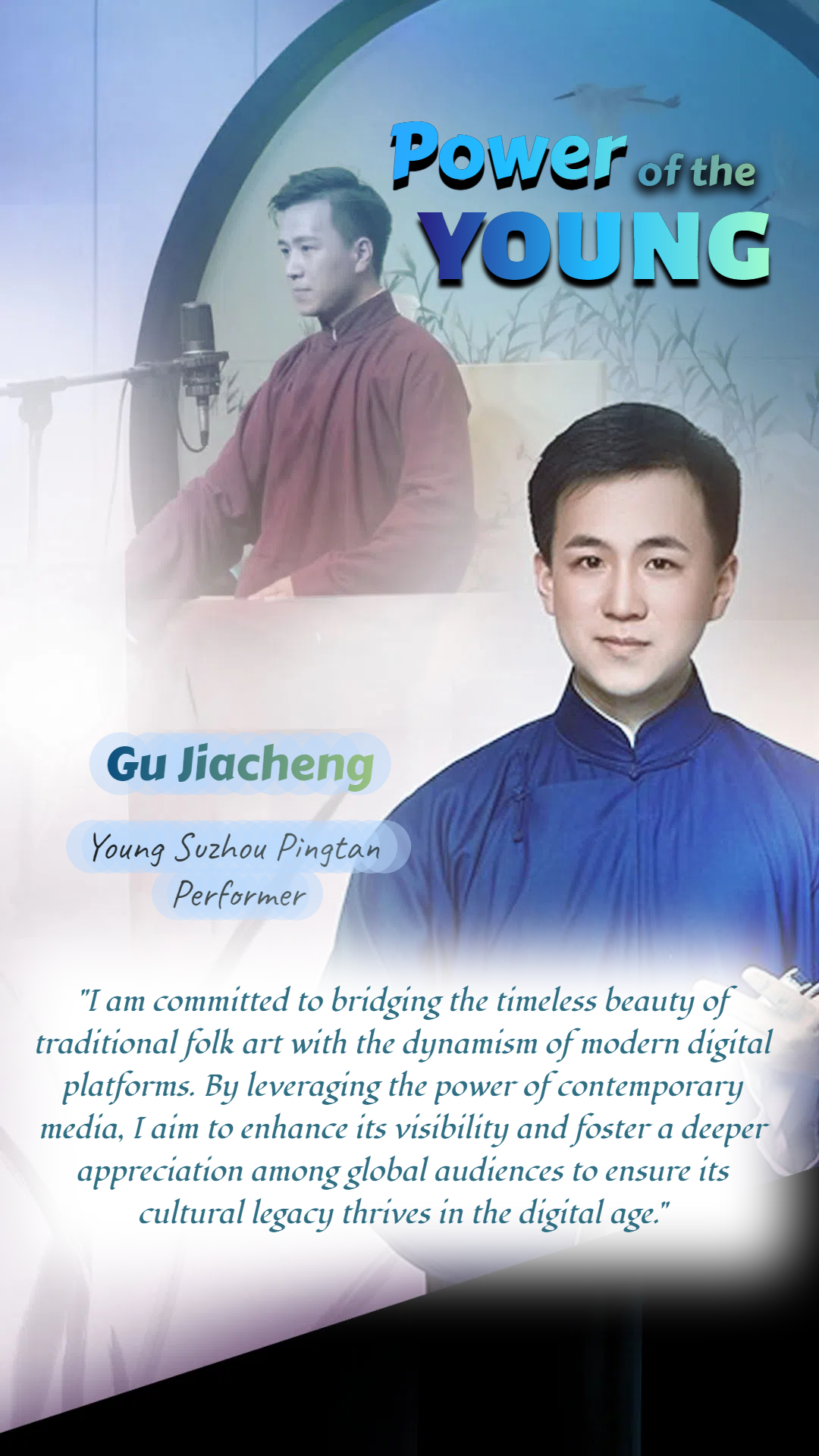 Gu Jiacheng – A Shanghai Pingtan Troupe performer preserving epic ballads like "The Pearl Pagoda," while injecting new life into this art through cultural tourism projects.