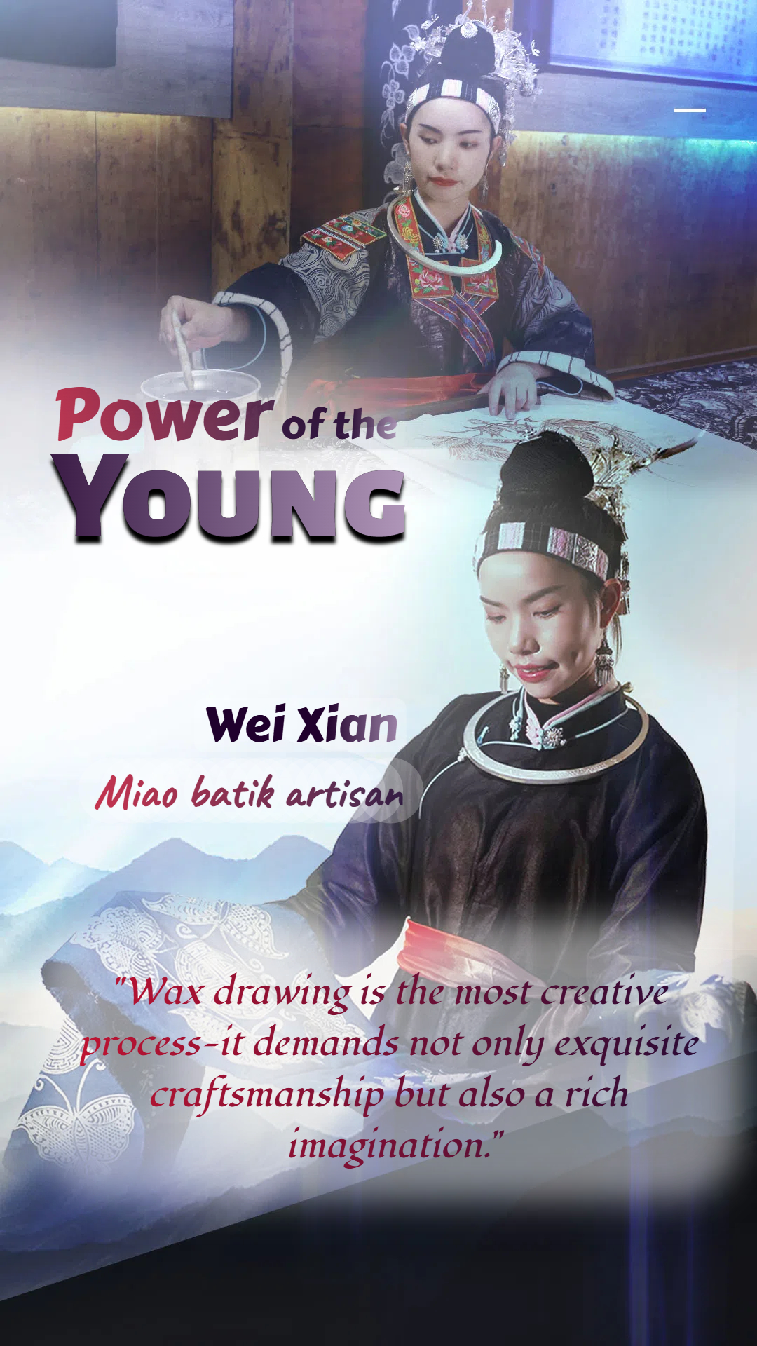 Wei Xian – Once a hip-hop dancer, now a Miao batik inheritor in Guizhou's Gaodong Village. Her wax-dyeing workshops welcome visitors to experience this vibrant craft.