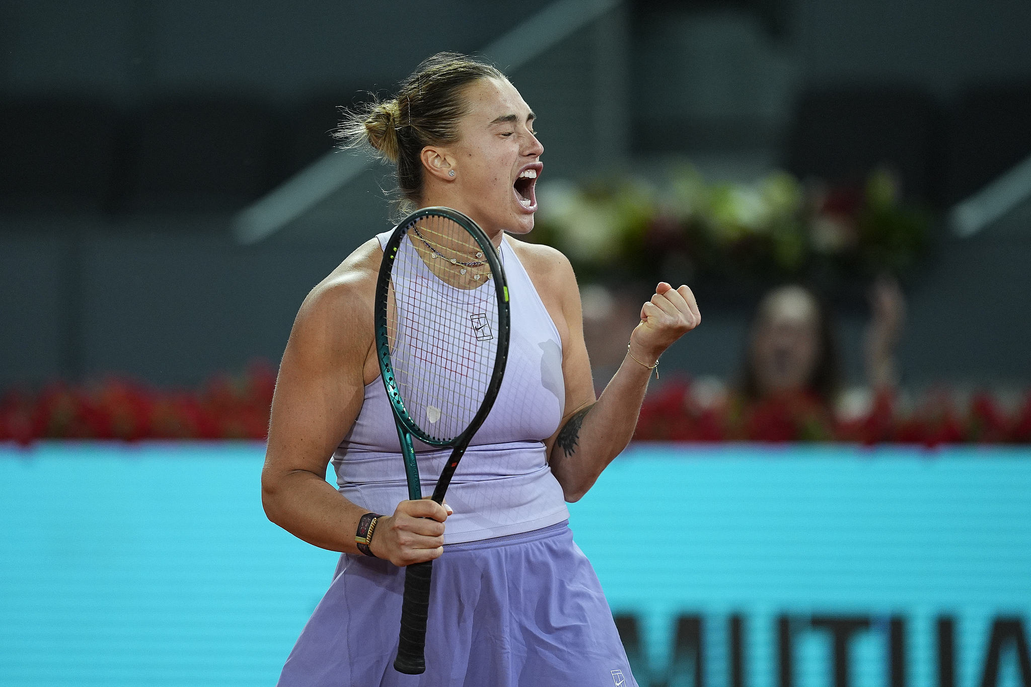 Last year's runner-up Aryna Sabalenka survived a gritty Marta Kostyuk and an untimely rain interruption to complete a 7-6(4), 7-6(7) win over the Ukrainian and reach the Madrid Open semifinals for a fourth time on Wednesday.