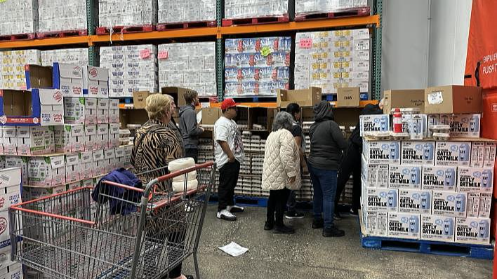 Consumers line up in a corner waiting to buy cheaper eggs in a Costco store in Los Angeles, U.S., April 4, 2025. /CFP