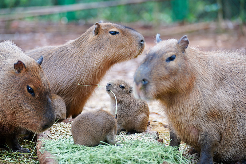After a period of adjustment, newborn capybaras and a baby giraffe met the public during the Labor Day holiday at the Yunnan Wildlife Park in Kunming City, Yunnan Province. Squirrel monkeys and great hornbills that have settled into their new habitat also shared the holiday vibe with tourists, drawing crowds of animal lovers to the zoo.