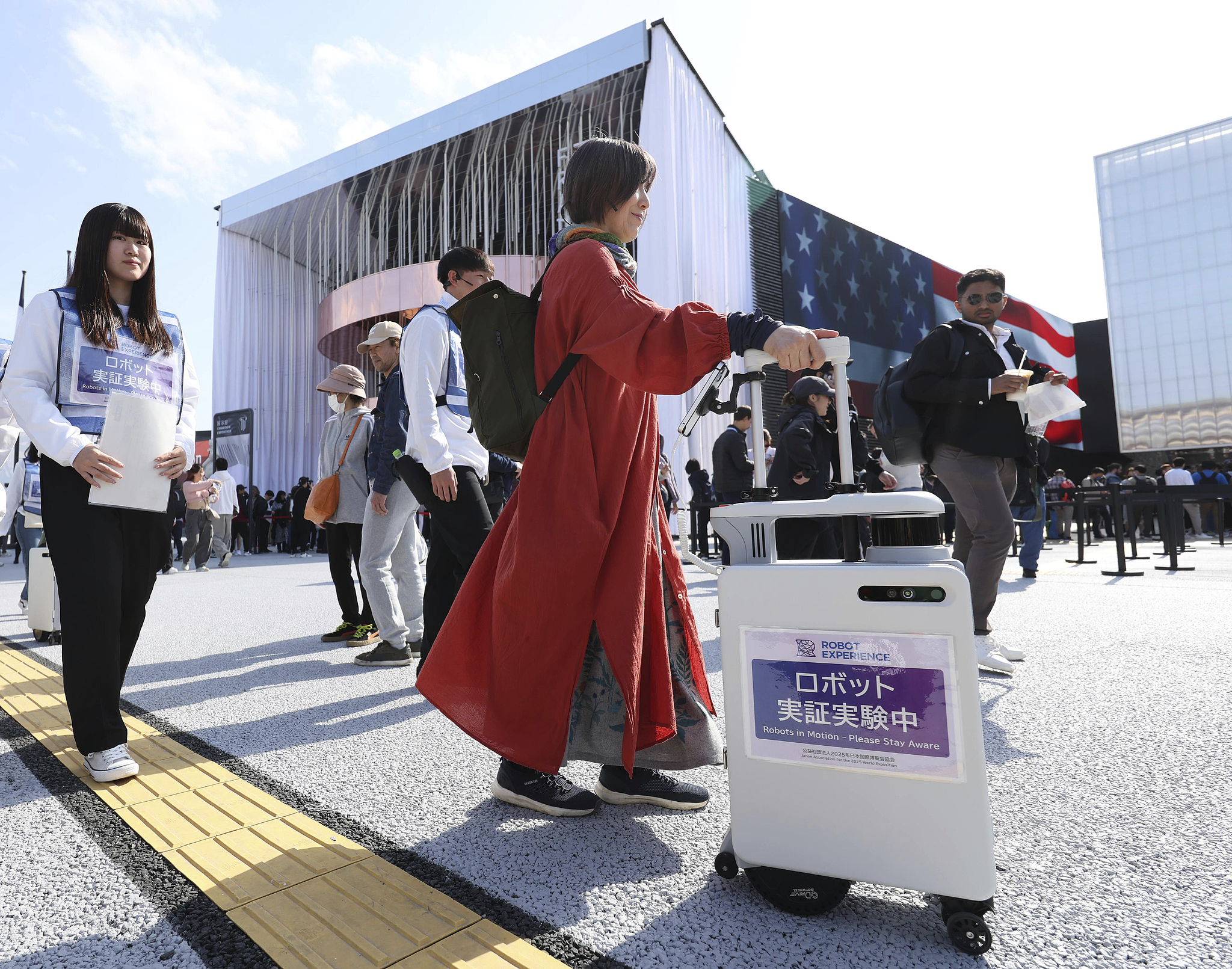 Participants experience the use of AI suitcase at a venue for Expo 2025 Osaka, Japan, April 14, 2025. /VCG