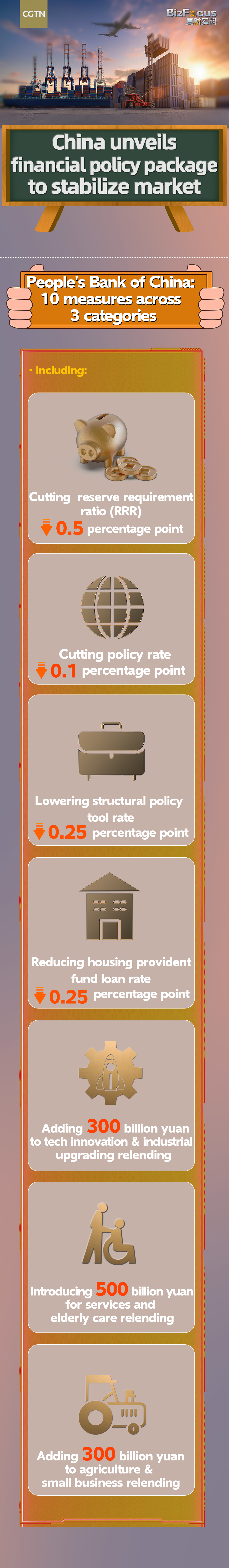 China on Wednesday announced a broad set of monetary, regulatory and market-oriented policies aimed at stabilizing the market, boosting expectations and shoring up economic momentum. From rate cuts to stronger financing for small and medium enterprises (SMEs), key regulators are stepping up with coordinated moves.