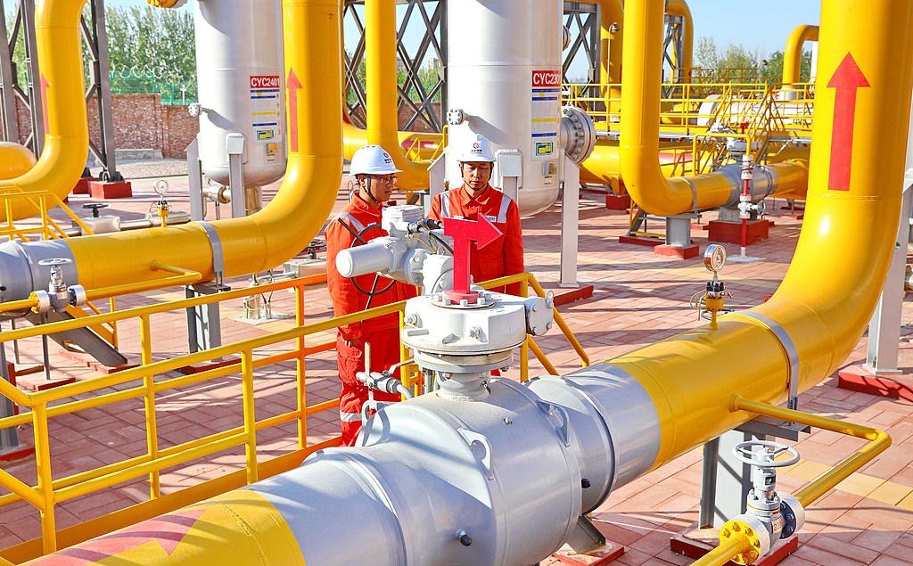 Technicians conduct routine inspections on the China-Russia East-Route Gas Pipeline in Hebei province, China, May 1, 2025. /VCG