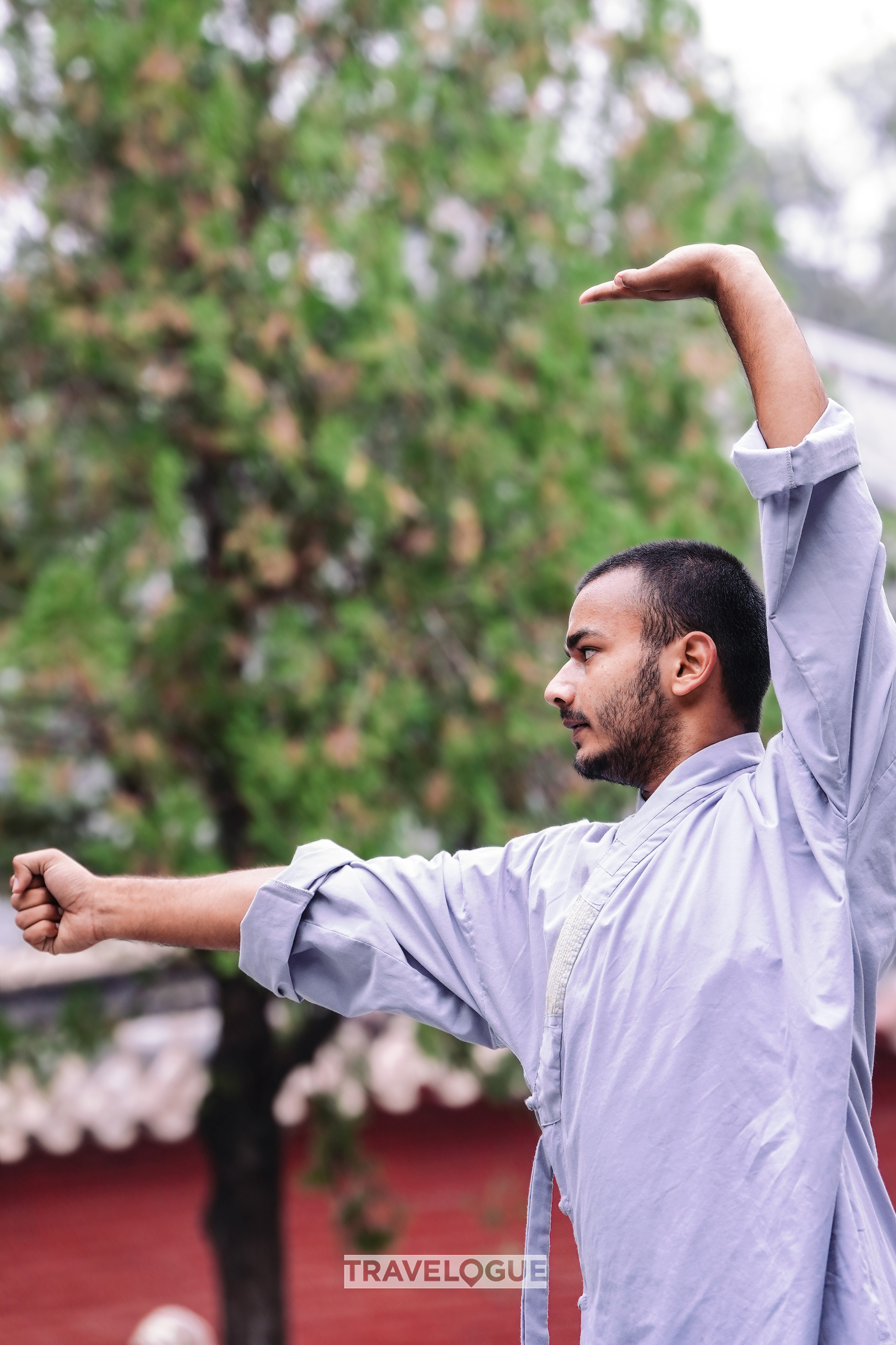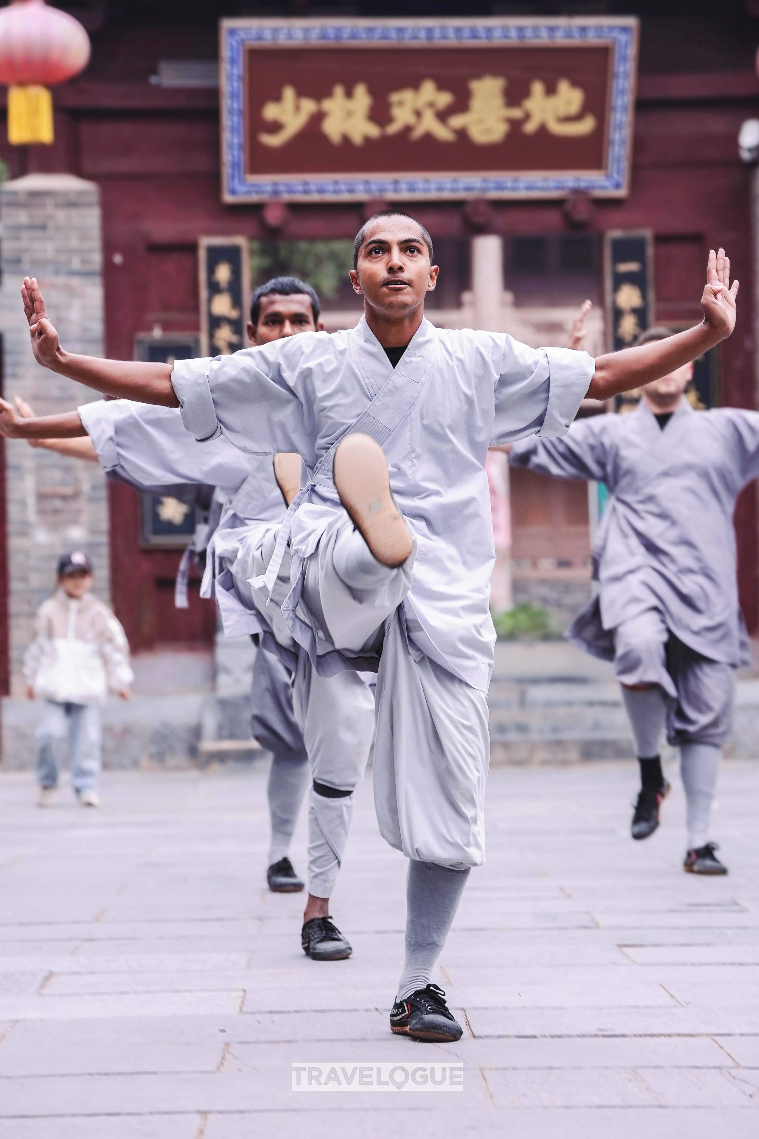 A kung fu enthusiast trains at Shaolin Temple. /CGTN