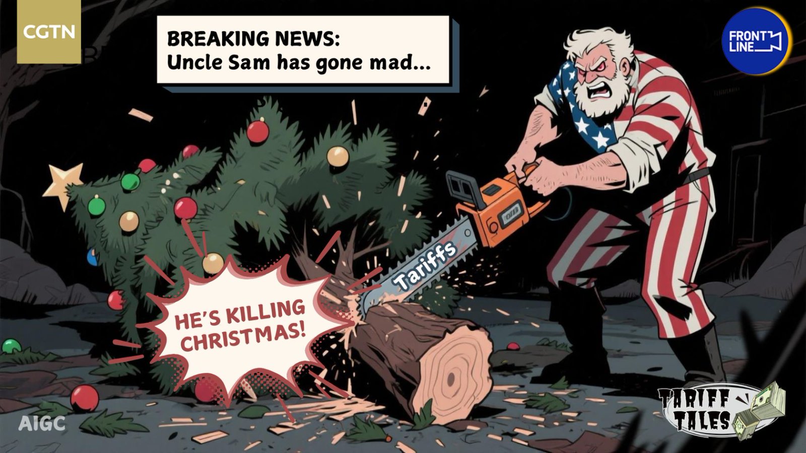 U.S. President Donald Trump's tariffs on Chinese imports are wreaking havoc on the supply chains for toys and Christmas goods, most of which are manufactured in China. The 145 percent tariffs are increasing costs for U.S. toy companies, leading to shortages and price hikes. As many toy stores halt orders, what might this year's Christmas season look like? Check out our satirical AI cartoon, where even Santa Claus might be left out in the cold.