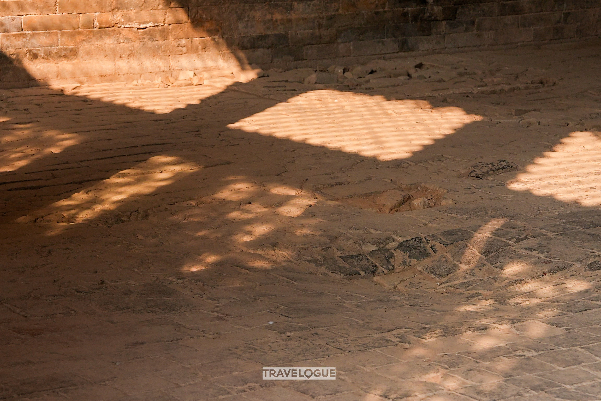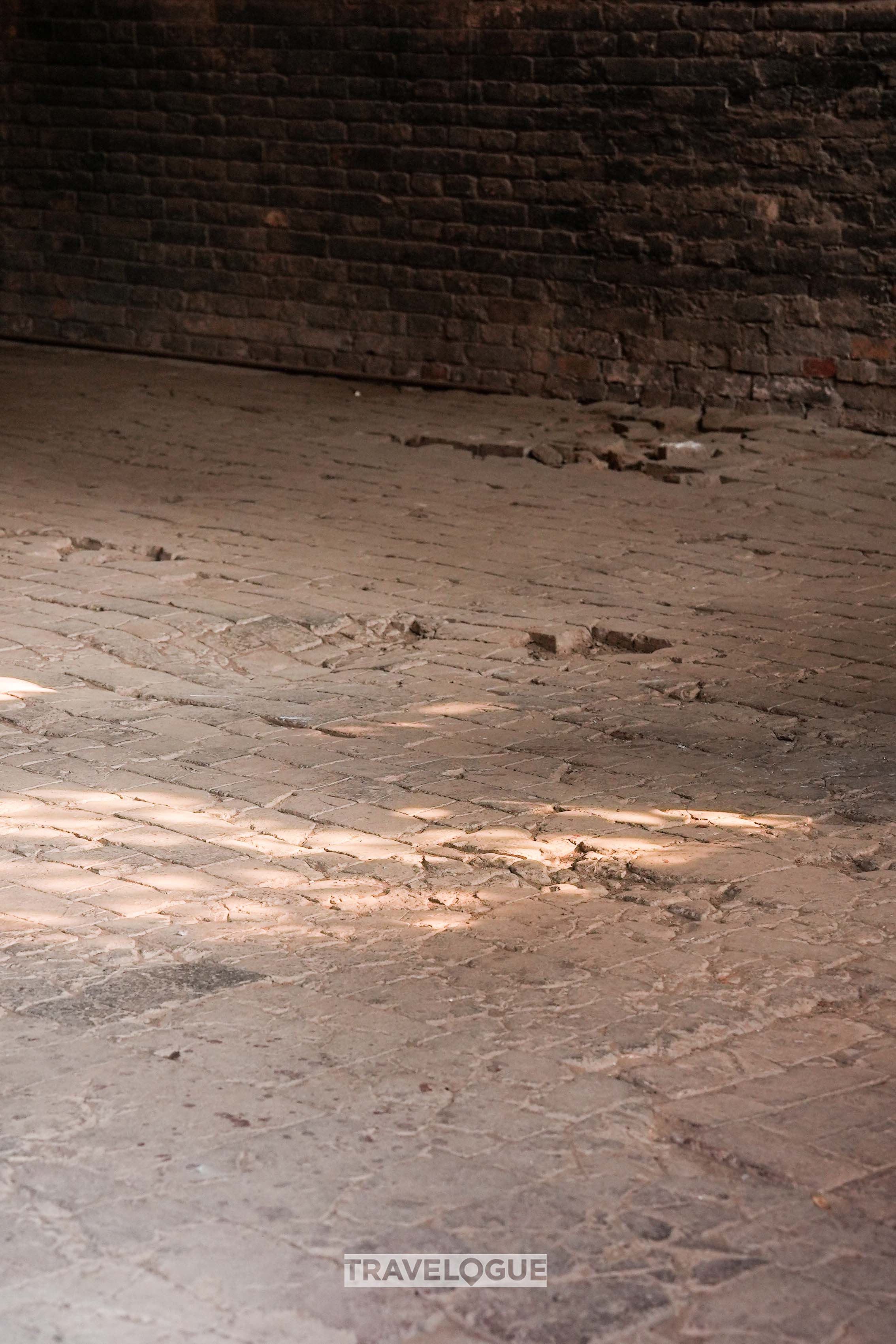 Deep foot impressions are seen in the Western Saints Hall of Shaolin Temple in central China's Henan Province. /CGTN
