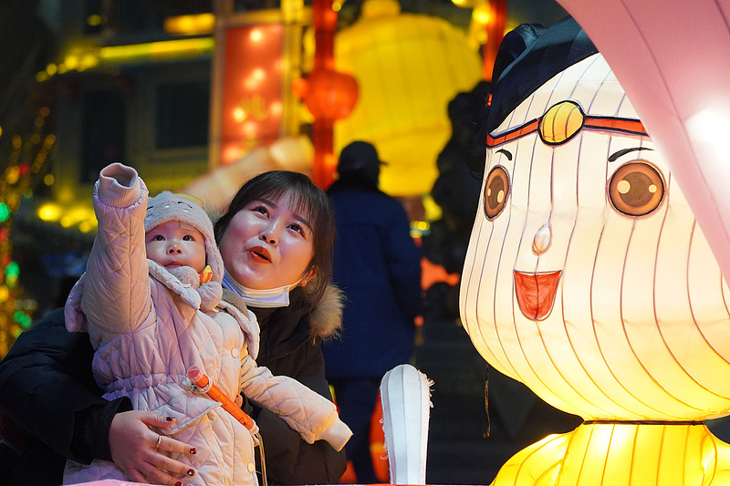 A mother and her child visit a lantern fair in Lanzhou, Gansu Province. /VCG