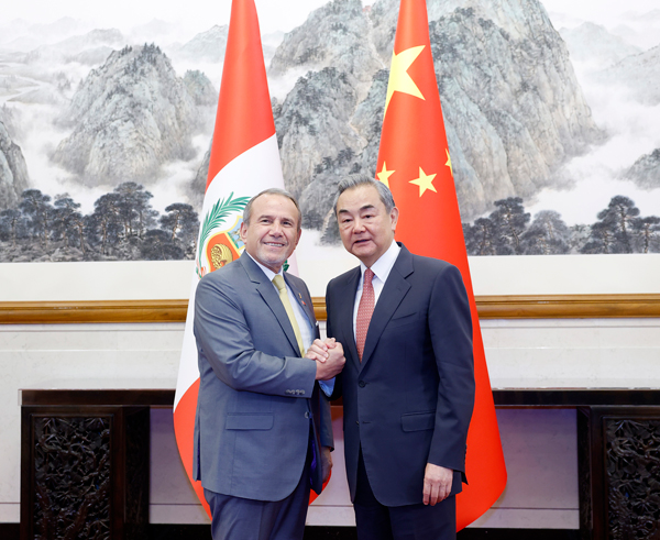 Chinese Foreign Minister Wang Yi, also a member of the Political Bureau of the Communist Party of China Central Committee, met with Peruvian Foreign Minister Elmer Schialer in Beijing on Monday, with the two sides vowing to deepen bilateral comprehensive strategic partnership.