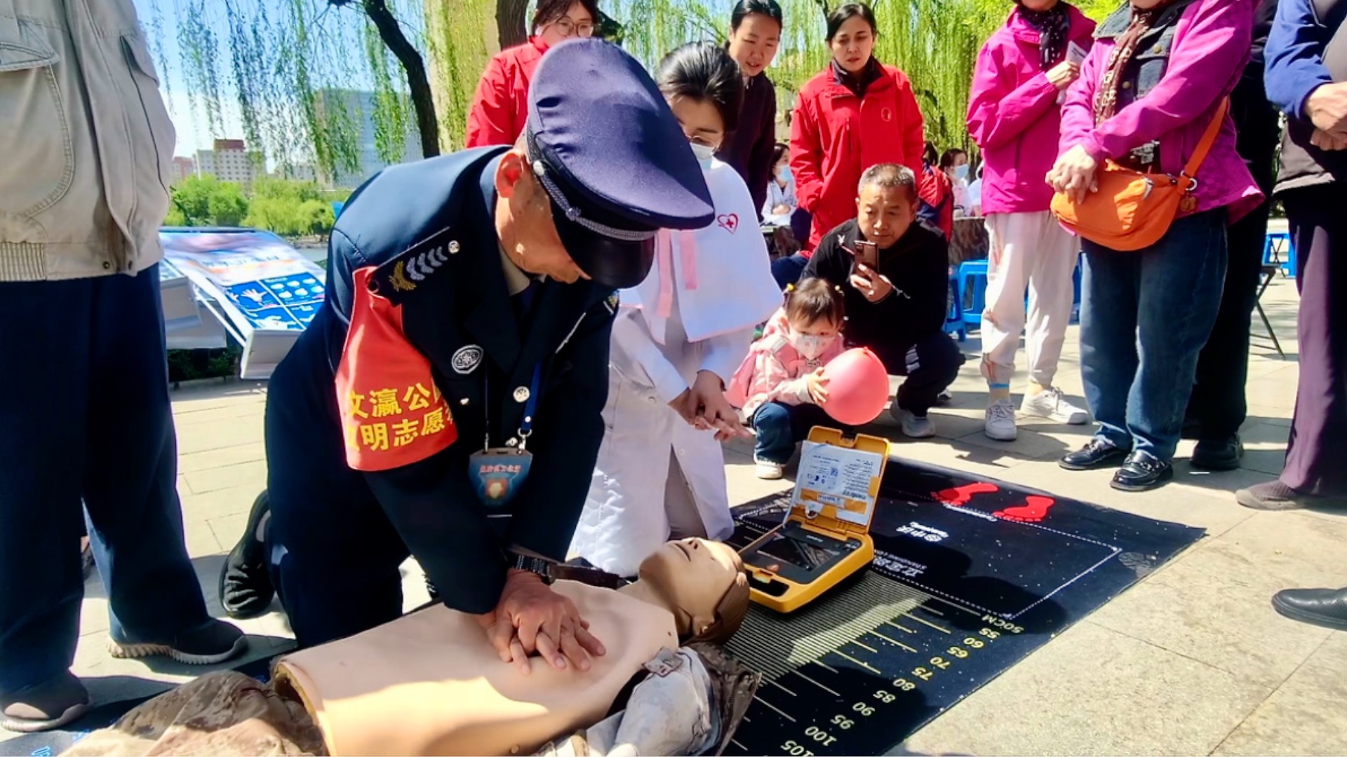 In a park in Taiyuan, the capital of north China's Shanxi Province, nurses taught park staff how to use an automated external defibrillator (AED) to respond effectively in emergencies. The demonstration was part of a series of public welfare activities organized by a local hospital to mark International Nurses Day on May 12. More than 100 medical staff from the hospital visited parks, schools, neighborhoods, and homes, offering first aid training, health consultation, and nursing services.