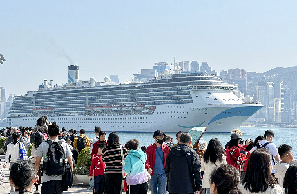 The Adora Mediterranea cruise ship sails into Victoria Harbor in Hong Kong on January 18, 2025. /VCG
