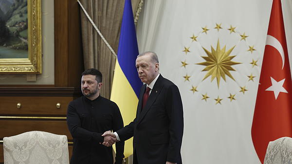 Turkish President Recep Tayyip Erdogan (R) shakes hands with his Ukrainian counterpart Volodymyr Zelenskyy during their meeting at the Presidential palace in Ankara, May 15, 2025. /VCG