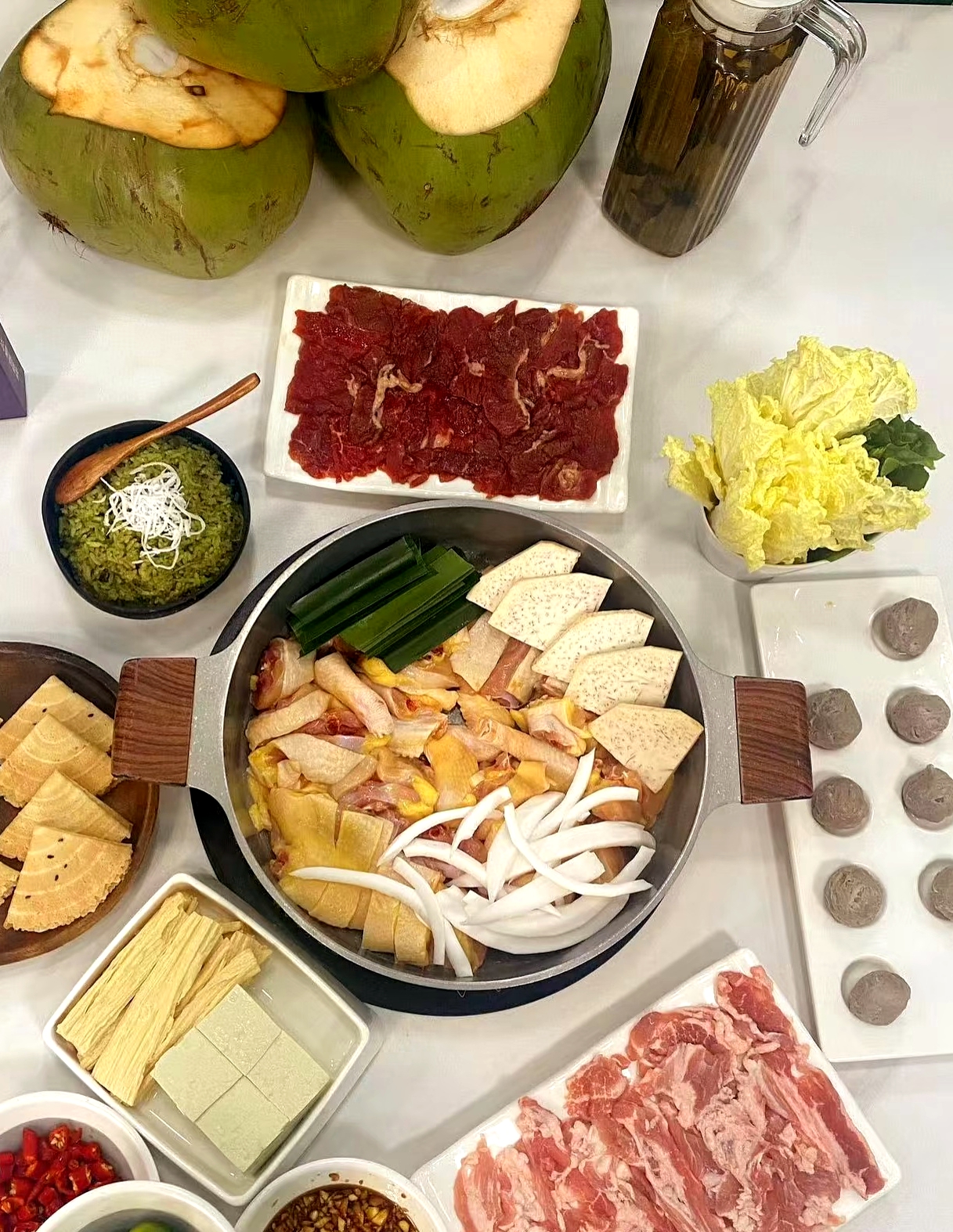 In addition to chicken and coconut, when making this dish, local people usually add tropical fruits such as durian, papaya and guava to the pot, or mix in smooth taro for an extra layer of flavor.
