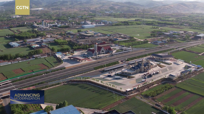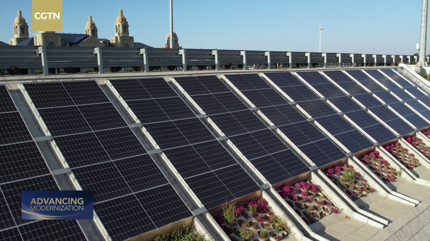 The integrated structural design combining expressways and PV facilities at Kunlun Service Area. /CGTN