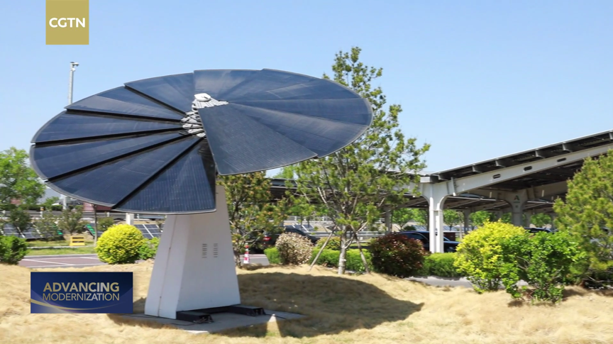 A solar power panel at Jinan East is shaped like a sunflower. /CGTN