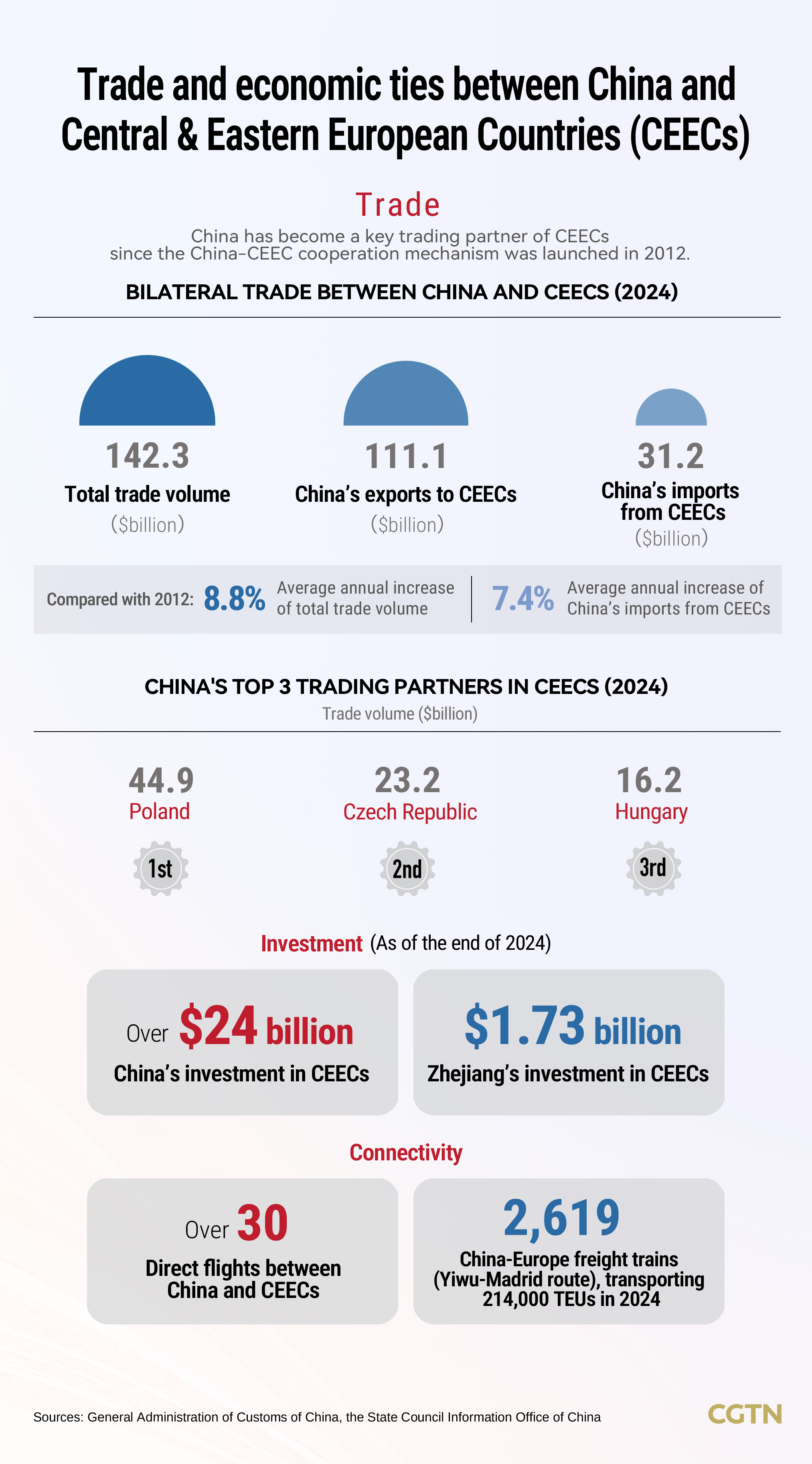 Since the founding of the China-Central and Eastern European Countries (CEECs) cooperation mechanism in 2012, China and CEECs have yielded fruitful achievements. The fourth China-CEEC Expo & International Consumer Goods Fair will take place from May 22 to 25 in Ningbo City, east China's Zhejiang Province. CGTN has highlighted this year's expo and shows China-CEEC cooperation results in the following infographics.