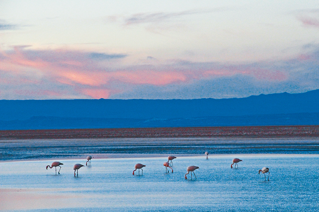 The salt flat is also a haven for wildlife: flocks of flamingos wade through its shallow waters, while the surrounding Andes mountains provide a majestic backdrop. At sunrise and sunset, the sky paints the salt with hues of pink, gold, and purple, creating an almost dreamlike scene.