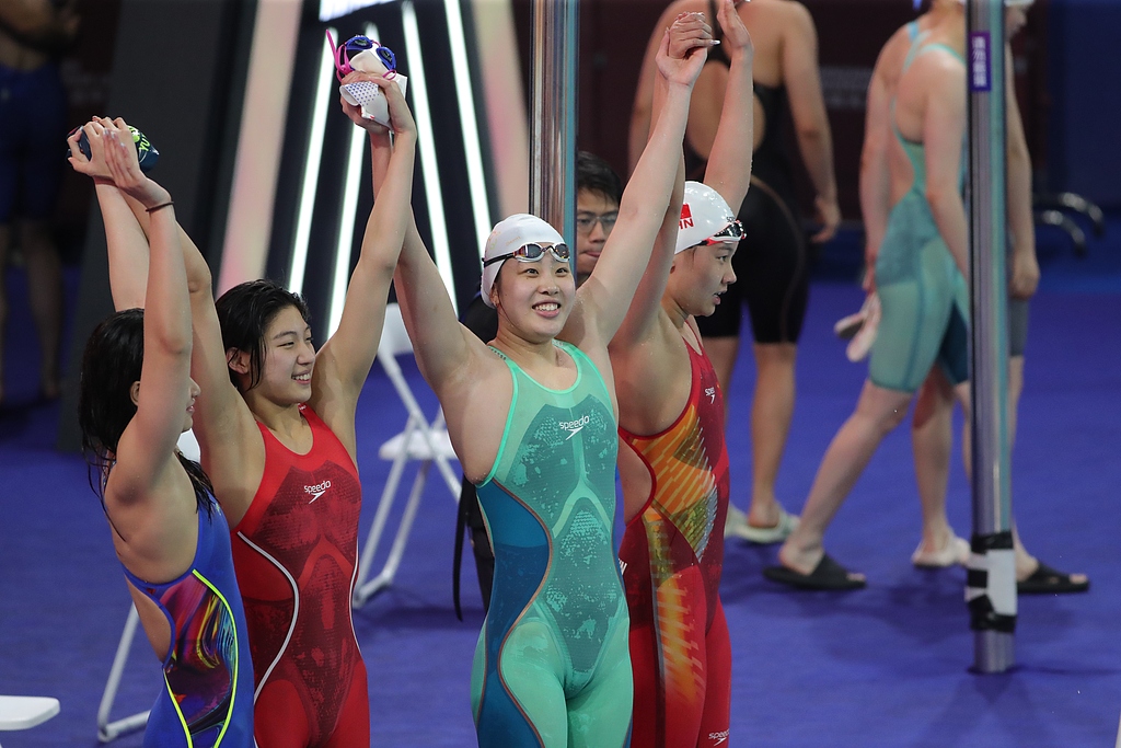 In the women's 4×200m freestyle relay, Zhejiang beat Hebei to claim gold. 15-year-old Yan Tiaoshan gave Zhejiang the lead after the opening freestyle leg. But Hebei came back and took the lead courtesy of Li Bingjie, who established a three-second cushion after 600 meters. Zhejiang's Liu Yaxin wiped out that deficit in the last 200 meters, however, and regained a one-second edge after the final turn. Liu then increased the gap as she anchored Zhejiang to gold in 7 minutes, 50.20 seconds.