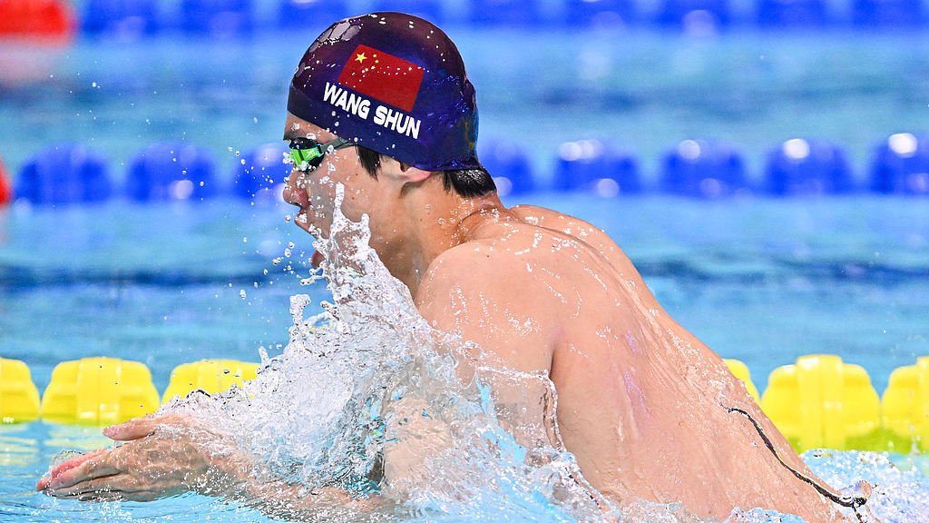 Wang Shun competes in the men's 200m individual medley final at China's National Swimming Championships in Shenzhen, May 21, 2025. / VCG
