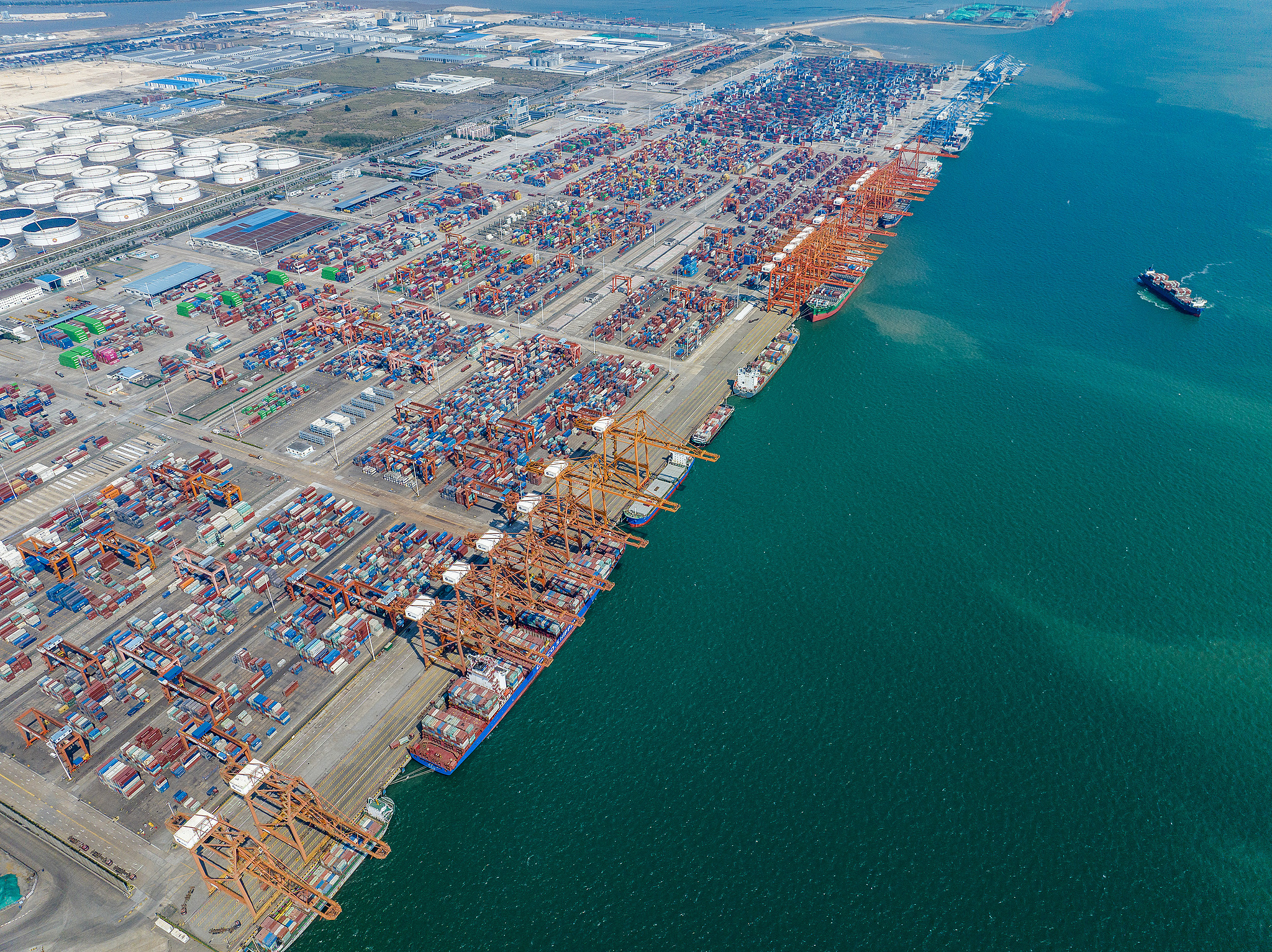 Automated equipment operates at the Qinzhou Automated Container Terminal in Beibu Gulf Port, a key hub connecting China and ASEAN countries, Guangxi Zhuang Autonomous Region, China, April 22, 2025. /VCG