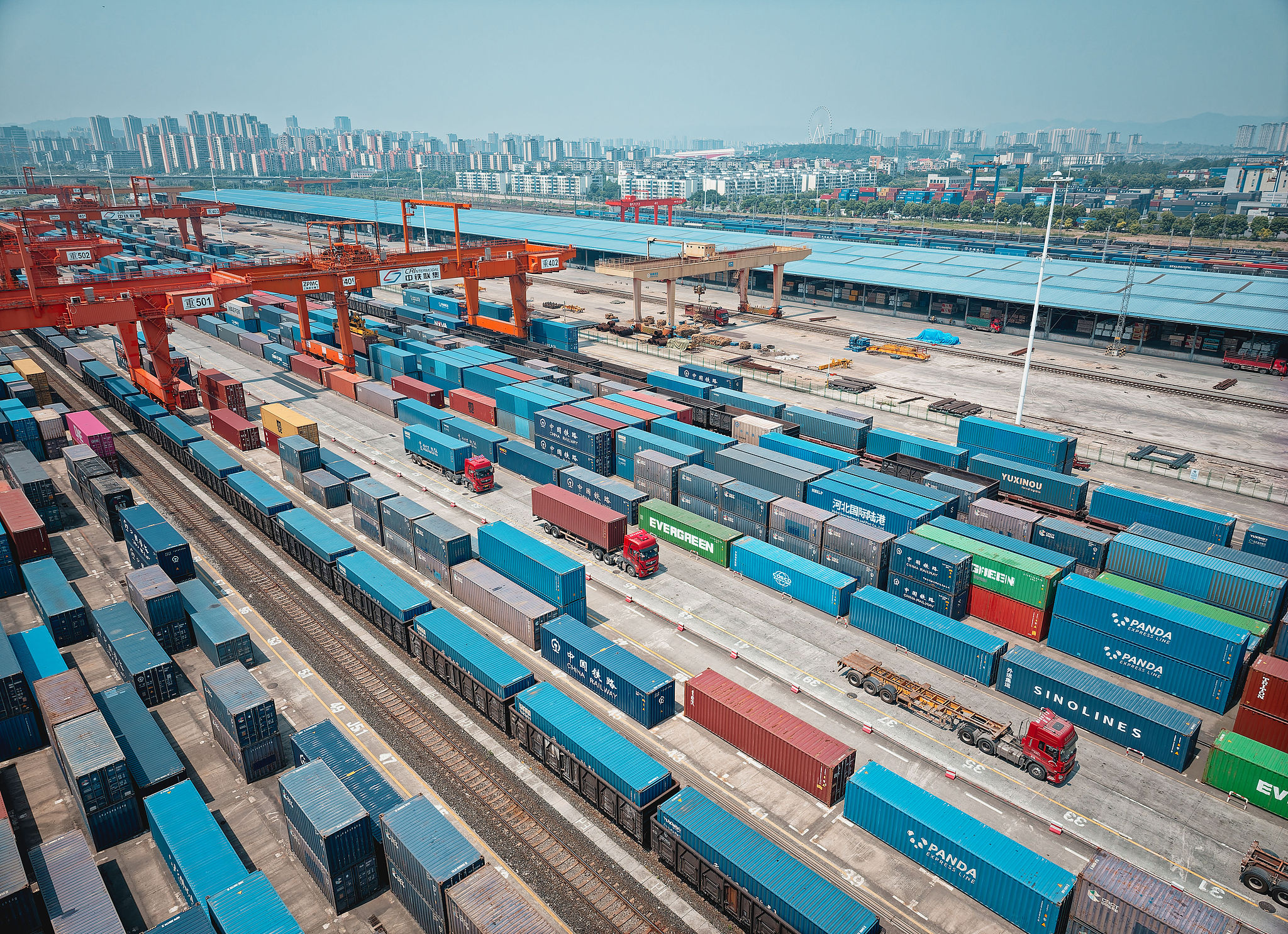 Trucks and trains transport containers along the New International Land-Sea Trade Corridor in Chongqing, China, May 20, 2025. /VCG