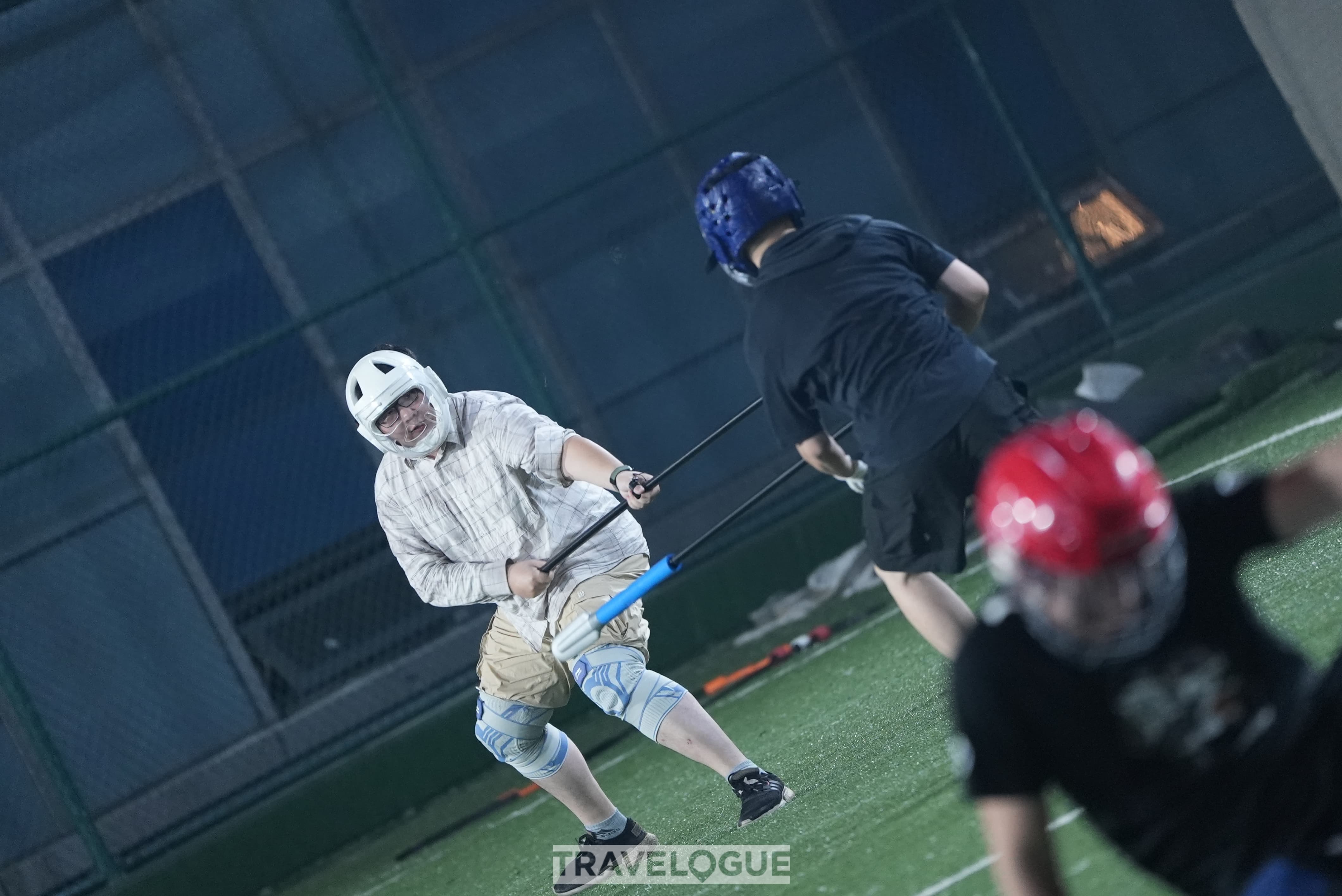 On the rooftop of a shopping mall in Shanghai, a group of people took part in a cold weapon combat game. They dressed in protective gear and used specially-designed safe swords, spears and arrows. It's a multiplayer game of attack and defense in which the participants choose weapons that are appropriate to their respective roles and work with their teammates to experience the thrill of team-based combat.